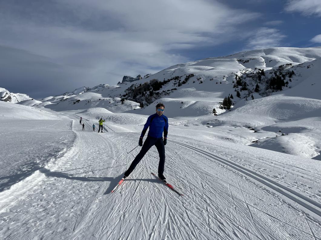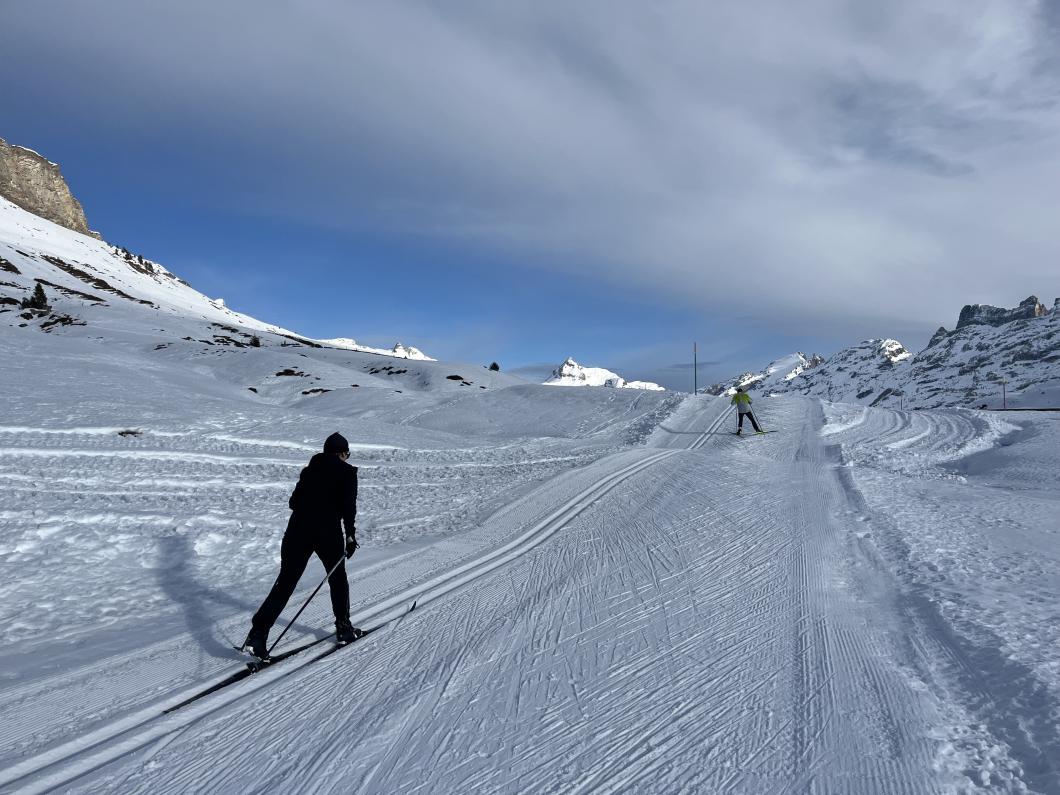| Tourenbericht Nach einigen Abklärungen fuhren wir ins Melchtal und dort mit der Bahn auf die Melchsee-Frutt. Oben angelangt, suchten wir den Loipenstart und liefen Richtung Tannalp. Auf der Strecke dorthin übten wir die verschiedenen Schrittarten der Skatingtechnik. Im Restaurant auf der Tannalp, stärkten wir uns bei einem guten Mittagessen. Neu gestärkt liefen wir zurück zur Melchsee-Frutt und festigten die vormittags angeschauten Schrittarten. Alle bestaunten die schöne Landschaft mit den zugefrorenen Seen und die gut präparierte Loipe. |
