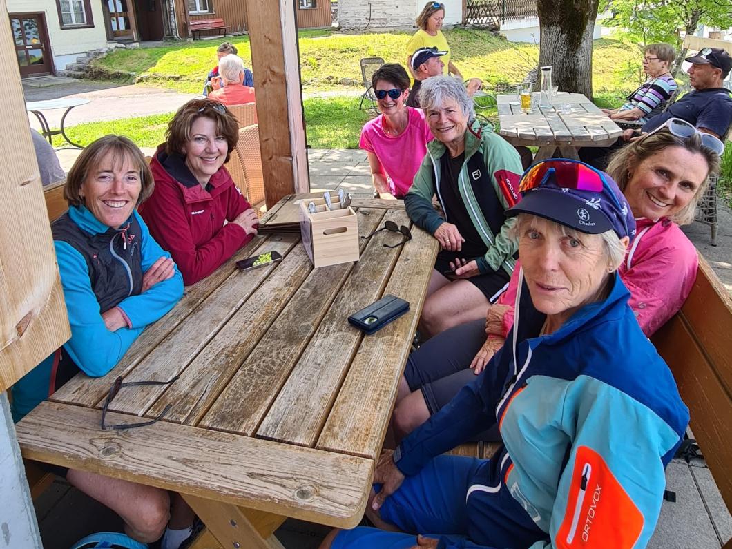 | Tourenbericht Bei schönem Wetter fuhren wir frühmorgens auf die Axalp. Wir starteten entlang dem Holzschnitzerweg bis zum Hinterburgsee. Dies ist ein angenehmer Weg zum Einlaufen. Nun gings stozig im Zick Zack hinauf zur Alp Urseli. Hier machten wir unsere erste Pause. Nun kraxelten wir über Kalkfelsen hoch in den Sattel und weiter gings nochmals stotzig bis auf den Axalpgrat. Nun war nur noch der ausgesetzte Grat bis aufs Axalphore zu überwinden. Wieder zurück auf dem Axalpgrat machten wir ausgiebig Mittagspause. Die Fernsicht war getrübt durch die Rauchpartikel von den Waldbränden in Kanada. Das war fast ein bisschen unheimlich. Freuen konnten wir uns an der Pracht der vielfältigen Frühlingsblumen. Für den Abstieg nahmen wir den Weg über Tschingel und Chiemand. Im Alpstübli auf der Axalp erfrischten wir uns mit Getränken und genossen noch die gute Kameradschaft, bevor wir uns auf die Heimfahrt machten. Bericht: Rosina Inniger |