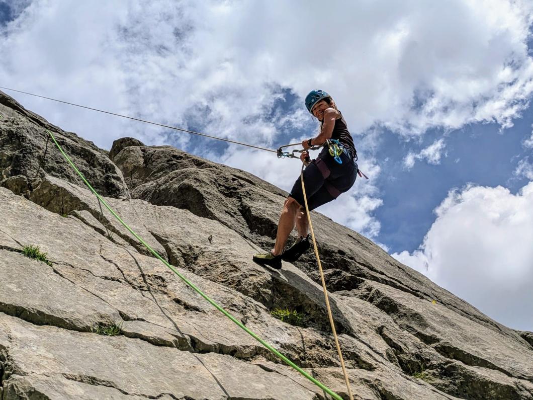 | Tourenbericht Wie macht man vier Frauen glücklich? Ja genau MANN geht mit ihnen klettern. Am besten Mehrseillängen und auch am besten an einen Ort, wo sie noch nie geklettert sind. Dies hat Köbi Hari mit uns gemacht. Wunderbares Sommerwetter mit einer leichten Brise, schöner Kletterfels all dies fanden wir an Ueschenen vor. Nach einem kurzen Zustieg haben wir zusammen eine der vielen Routen ausgewählt. Köbi instruierte uns vor dem Einstieg meisterhaft, Kommandos wurden abgemacht, Knoten, Seilhandhabung und Material geprüft. Nach einigen Mehrseillängen mit anschliessendem Abseilen, genossen wir unseren Lunch. Inmitten der schönen Bergblumen und Bergwelt schmeckte das Sandwich gleich doppelt gut. Die Zeit verging wie im Fluge, es war bereits früher Nachmittag. Wir beschlossen noch zwei Seillängen zu klettern und danach einen kühlen Drink zu geniessen. Herzlichen Dank an Köbi, dass er mit uns Frauen einen lustigen, sportlichen, herausfordernden und unvergesslichen Tag verbracht hat. |