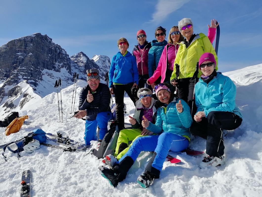 | Tourenbericht Kurz nach 8:00 Uhr erreichen wir mit zwei Autos den Treffpunkt an Falchern oberhalb von Meiringen. Den Nebel haben wir kurz vorher hinter uns gelassen, der wolkenlose Himmel ist vielversprechend. Gleich beim Parkplatz schnallen wir die Skier an, nun steigen wir gemütlich an der schneebedeckten Schattseite des Haslitals höher. Vorbei an abgeschiedenen Weid- und Alphütten, alten Ahornbäumen, zugefrorenen Bergbächen, eisigen Felsen und sanften Ebenen. Sich in dieser abwechslungsreichen, verträumten Winterlandschaft zu bewegen, ist ein Genuss! Der über 500 hm. lange Gipfelhang sieht beeindruckend steil aus, aber mit der guten Spur von Michèle und den vielen geübten Spitzkehren unserer Gruppe erklimmen wir auch diesen problemlos. Oben auf dem Gipfel geniessen wir den Weitblick auf das grosse Nebelmeer über dem Haslital und ennet dem Brünig und das herrliche Bergpanorama rundherum. Nach einer ausgiebigen Gipfelrast und dem obligaten Gruppenfoto, welches einer der zwei anderen Tourengänger, übrigens den einzigen auf gleicher Route, von uns knipst, machen wir uns auf die lange Abfahrt. Zuerst durch aufgeweichten Plüttersulz, danach durch immer besser werdenden Pulverschnee gehts rassig zurück zum Ausgangspunkt. In Meiringen löschen wir noch den Durst, und lassen bei einem Stück Haslichueche den Tag Revue passieren. Danke Michèle für die Organisation und Durchführung dieser wunderschönen Tour! Bericht: Madeleine Lauber |