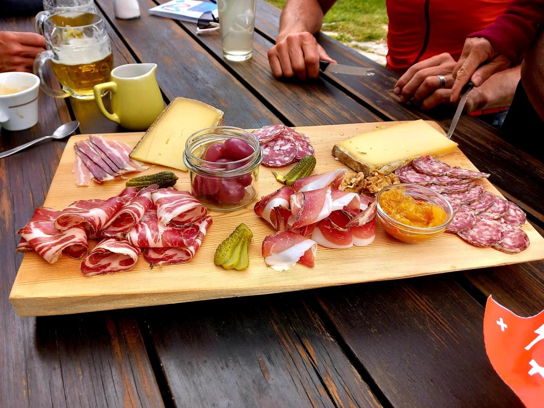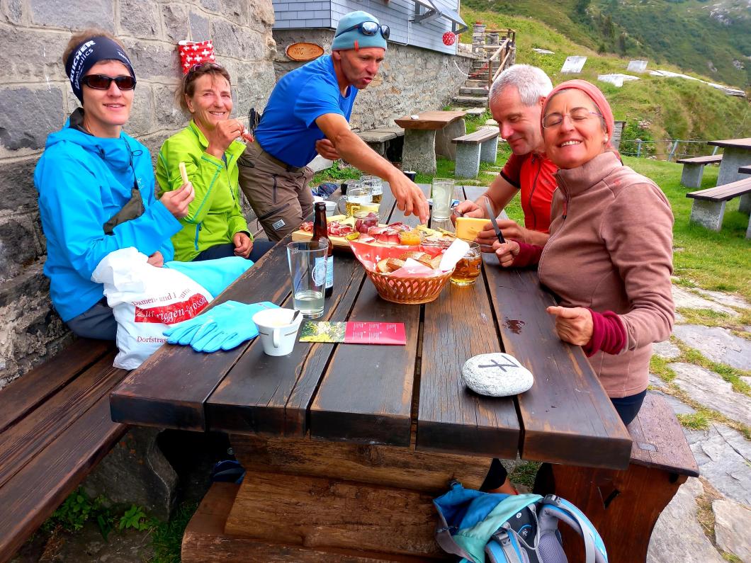Über sanfte Hänge führt uns der Wanderweg wieder runter an den Zervreilasee und nach leichter Steigung sind wir wieder bei der Kapelle und den Autos angelangt. Wir fahren zusammen ins Dorf Vals und geniessen zum gemeinsamen Abschluss – nein keine Pasta mehr! – sondern Risotto, Capuns und Wiener Schnitzel !