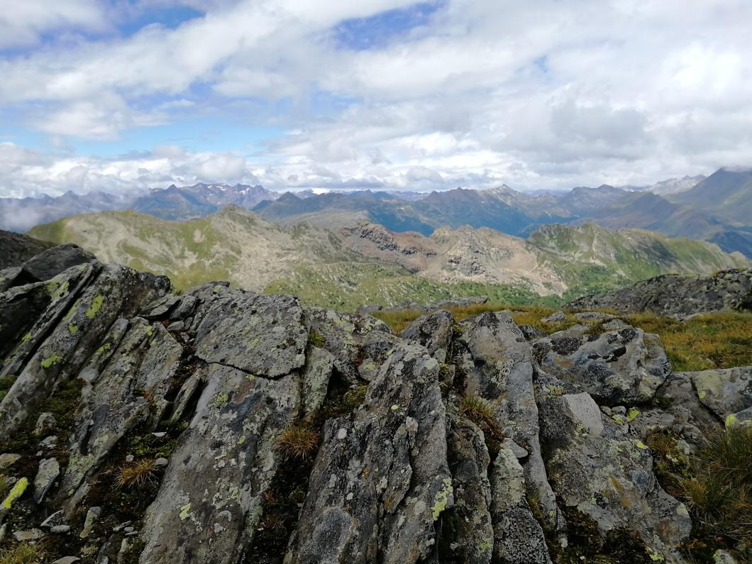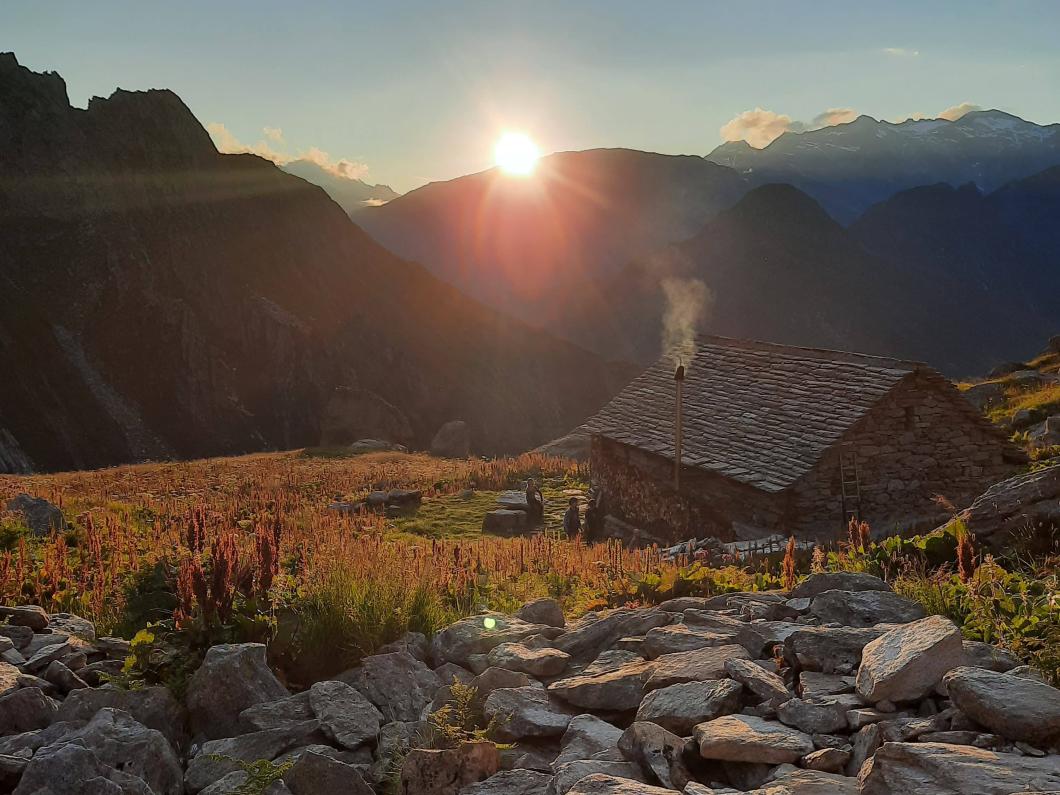 Gemütlich geht’s am Samstag weiter - wir warten ab, bis der erste Regen des Tages vorbei ist. Dem Wetter angepasst steigen wir nicht auf, sondern kurz ins schöne Val Carrassin ab, machen einen Stopp auf der Alp, füllen unsere Rucksäcke mit Käse und steigen Richtung Bocca di Fornee auf. Es ist Heidelbeerizeit und wir bedienen uns gerne!