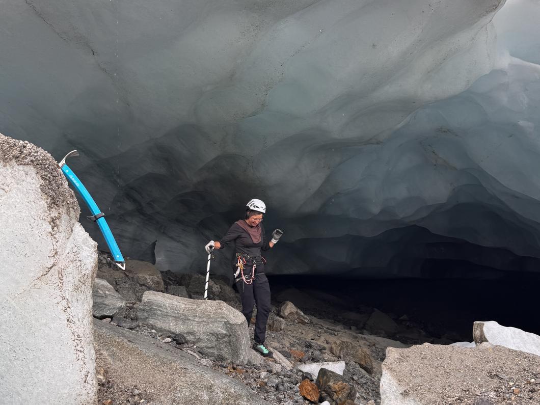 Bei mystischen Bedingungen stiegen wir via Gornersee zum Grenz-Gletscher hinunter. Wenn sich die Gelegenheit schon bot, bestaunten wir das grosse Gletscher-Seiten-Tor. Über den Gletscher hinunter erreichten wir bald den Bach des Gorner-Gletschers. Der nun folgende Aufstieg zum Gorner-Gletscher war das anspruchsvollste und steilste Wegstück. Über abgeschliffene Felsen und zwischen grossen Steinblöcken erreichten wir die Zunge des Groner-Gletschers und bald die Schlüsselstelle, dem Einstieg zur Rampe. Die Krampen halfen die acht Meter hinauf zur imposanten rote Rampe. Wenig später ging es zügig über die achtzehn Meter Leiter hinauf zum Boden unterhalb Gadmen. Nun hatten wir eine Pause verdient. Das Wetter noch immer wolkig - wir genossen die Sonne und die neu verschneiten alpinen Dimensionen. Noch eine Stunde bis zurück in die Zivilisation. Auf dem leichten Aufstieg, hinauf zum Rotenboden, kreuzten uns viele Tourengänger. Wir waren mit Wetterglück weitgehend allein unterwegs, am Samstag/Sonntag war die Hütte wieder voll.