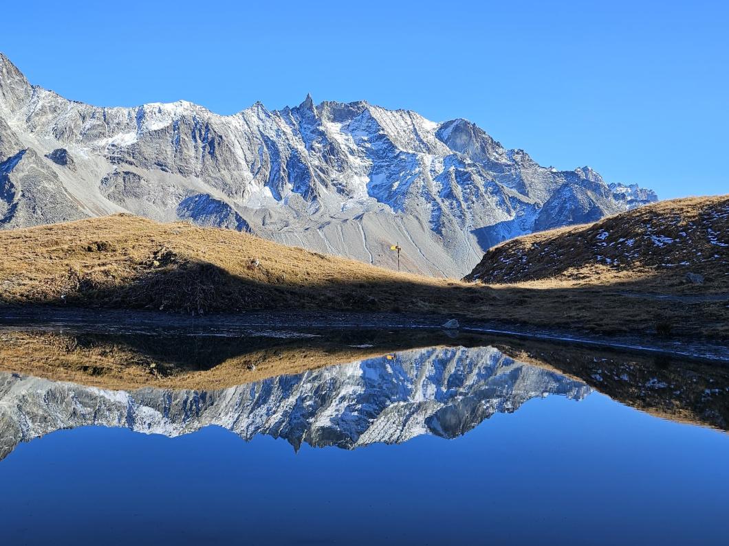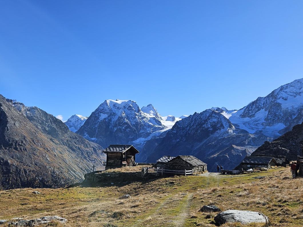 Nach dem Gipfelerlebnis machten wir uns auf den Abstieg, der uns zur Cabane des Aiguilles Rouges führte. Leider war der Hüttenwart abwesend. Die Wanderung folgte über weite Alpwiesen und durch wunderschöne herbstlich gefärbte Wälder zurück zum Ausgangspunkt.