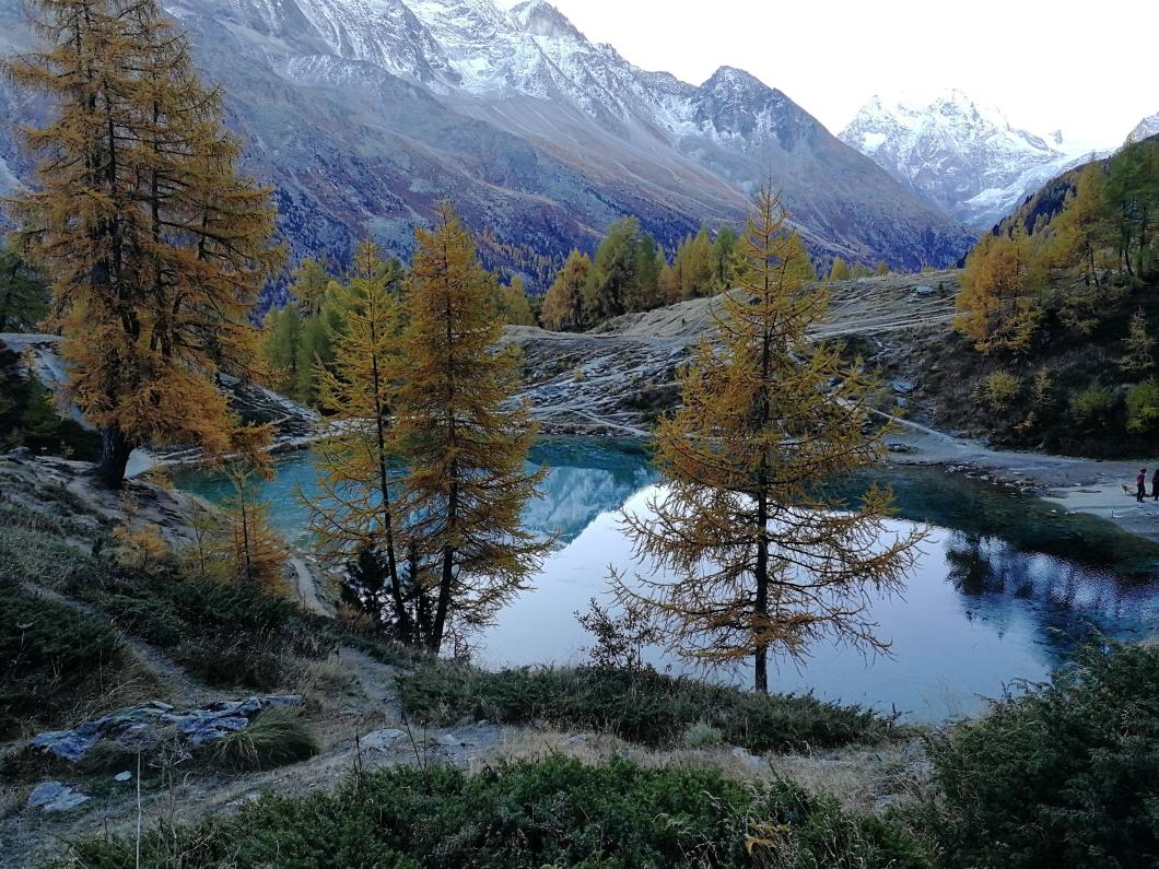Die Wanderung begann mit einem etwa 30-minütigen Marsch, der uns durch die herbstliche Landschaft führte. Der Weg war von den goldenen und roten Farben des Herbstes gesäumt und bot bereits zu Beginn eine wunderschöne Aussicht. Erster Hotspot war der Lac Blue, 2096 m. Ein malerischer Bergsee, der glasklar schimmerte. Hier hatten wir die Gelegenheit, die Ruhe der Natur zu genießen und erste Fotos zu machen.