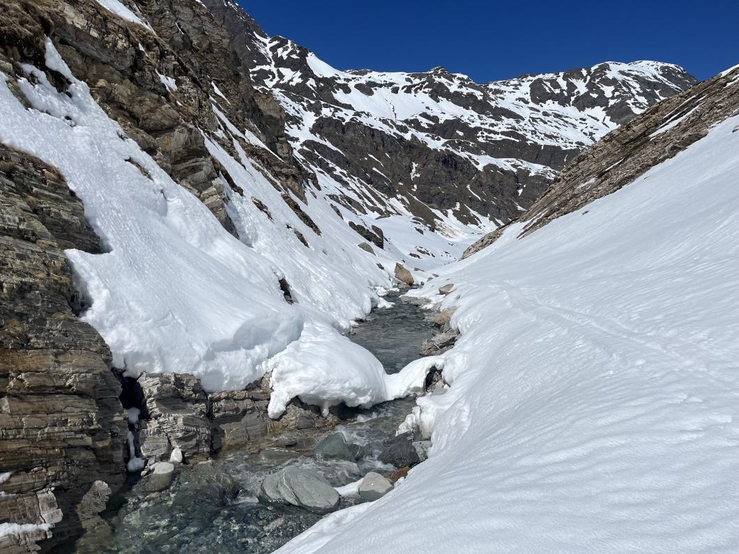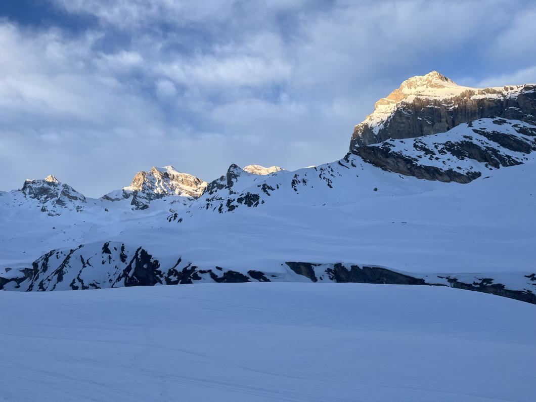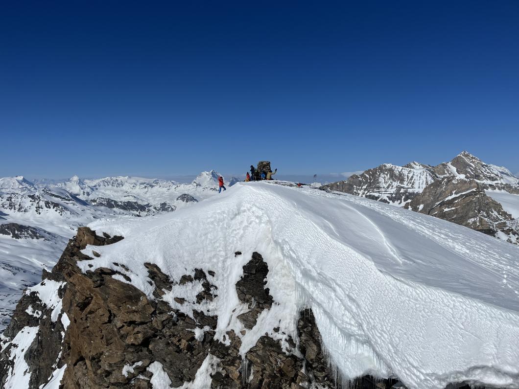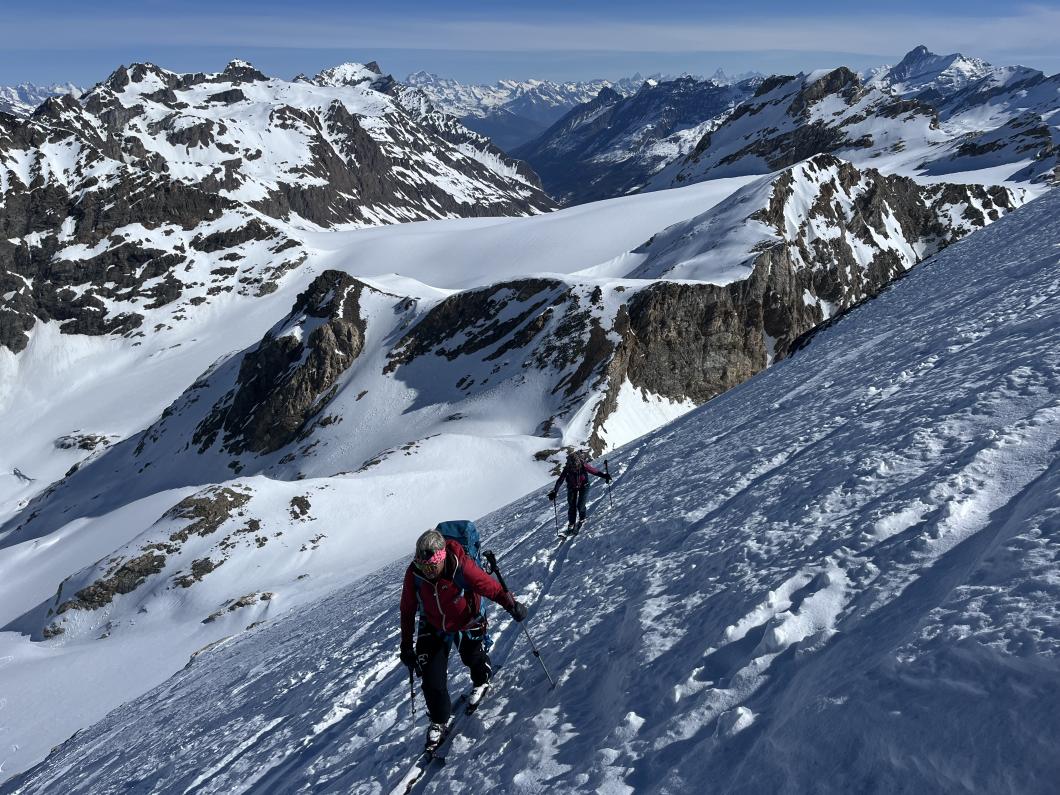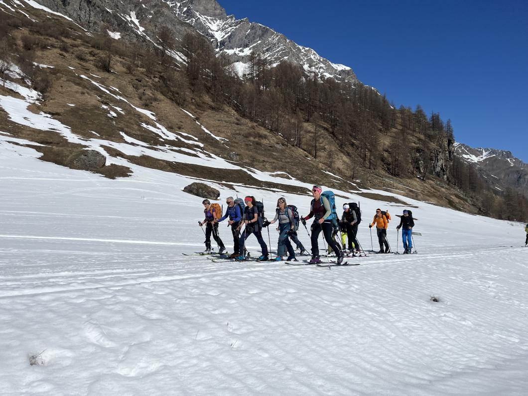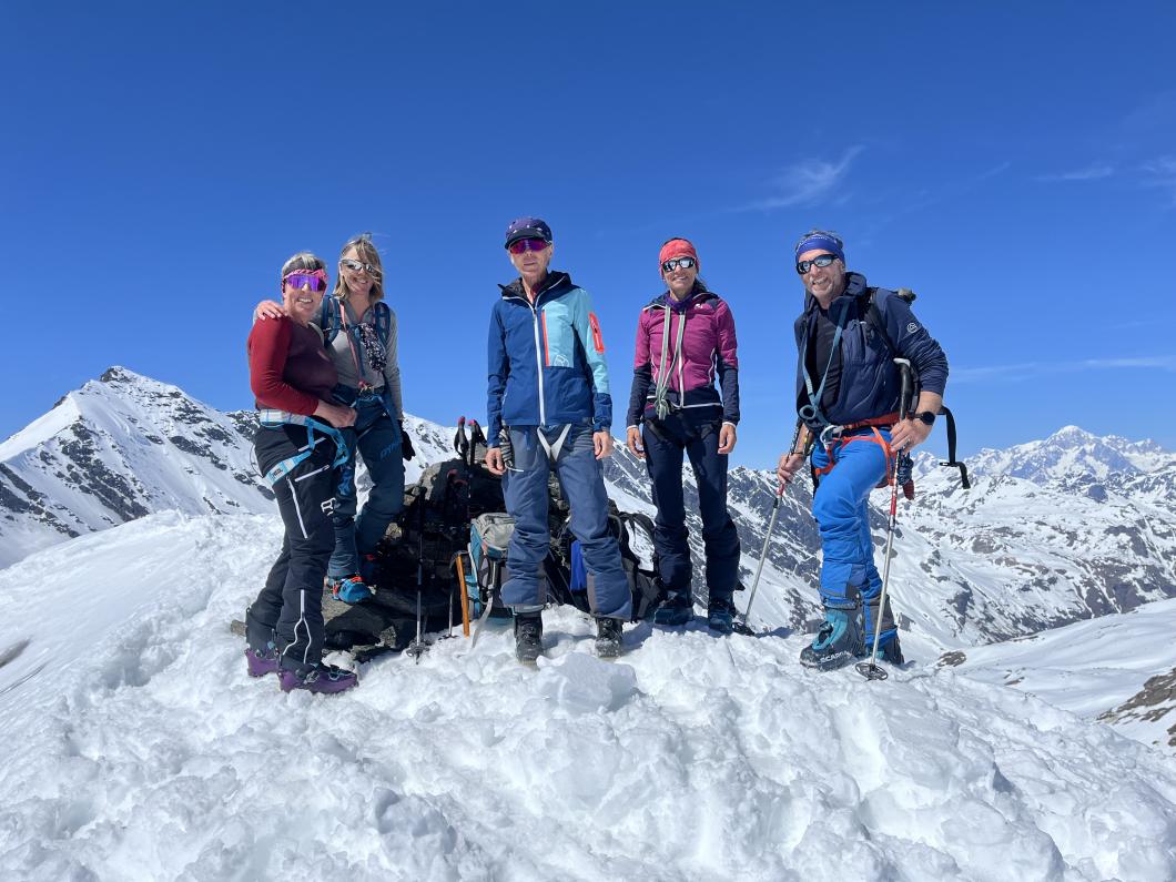 | Tourenbericht 1.Tag Früh und gut gelaunt fuhren wir in Adelboden los Richtung Val di Rhêmes. In Rhêmes Notre Dame parkierten wir und zogen Richtung Benevolo Hütte los. Nur ein einziges Mal mussten wir auf dem Hüttenweg wegen Schneemangel kurz die Skis tragen Nach einer kurzen Pause in der Hütte machten wir uns auf, um den Punta della Paletta zu besteigen. Es war sehr warm und der Aufstieg musste ein bisschen erkämpft werden. Aber es lohnte sich, die Aussicht war grandios und auf der Abfahrt hatten wir wunderbaren Sulzschnee. 2.Tag Zuerst stiegen wir alle auf den Punta Calabre. Erwin führte seine Gruppe noch auf den Roc Basagne. Um diesen Gipfel zu erreichen musste die Gruppe die Skis ein paarmal an- und abfellen. Die Route sah folgendermassen aus: Abfahrt nach Norden, Aufstieg zum Col di Rhême, Abfahrt nach Süden und Aufstieg zum Gipfel. Fritz fuhr mit seiner Gruppe direkt zurück zur Hütte. 3.Tag Heute war unser erstes Tagesziel Punta Galisia. Nach zwei Tagen mit Schwitzen, frierten wir beim Aufsteigen. Oben teilten wir uns in drei Gruppen. Fritz fuhr mit seiner Gruppe direkt zurück zur Hütte. Ruedi machte Einige gluschtig das Culoir zwischen Punte Galisia und Roc Basagne abzufahren. Erwin bot seiner Gruppe an den Punte Basei zu besteigen. Dazu wurde zuerst nordwärts abgefahren, nachher noch ein Stück traversiert und aufgestiegen zum Colle Basei und weiter den Spuren nach über den Grat bis zu den Gipfelfelsen. Wir nahmen an, dass hier der „Wintergipfel“ ist. Auf der Abfahrt hatten wir wunderbaren Pulver an den Nordhängen und Sulz an den Südhängen. 4.Tag Rund um den Granta Parei war für die Gruppe von Erwin der Tourenplan. Aufstieg zum Colle Tsantelleina, Abfahrt auf den Glacier de Rhêmes-Colette, Aufstieg zum Grat vom Ricco di Coletta (Punkt 3228m) und Abfahrt zurück zur Hütte. Fritz und Ruedi bestiegen mit ihrer Gruppe auf der gleichen Runde zusätzlich den anspruchsvollen Punta Tsanteleina. Ruedi machte eine super Spur. Herausfordernd waren die Spitzkehren, die letzten Meter vor dem Gipfel (40°) und auch beim Abfahren war Vorsicht die erste Priorität. Auf dem Rückweg gelang es Fritz die Gruppe zu überzeugen, den auf dem Weg liegenden Becca Traviersière auch noch zu erklimmen. 5.Tag Fritz führte seine Gruppe auf den Roc de Basagne. Ruedi und Erwin boten den Roc dal Fond mit alpinen Herausforderungen an. Zuerst wurde der Aufstieg gemacht wie gestern die Abfahrt und weiter zum Picco di Colletta. Dieser flache Hügel war anspruchsvoller als gedacht! Weiter gings mit der Abfahrt zum Colle Tsanteleina, dann wurde der Gletscher di Tsanteleina überquert und wieder aufgestiegen zum Col di Rhêhme. Nun war noch der herausfordernde Gipfelanstieg zum Roc dal Font an der Reihe. Auf dem Gipfel war es windstill und die Gruppe genoss nochmals die Rundsicht, bevor sie wieder voll konzentriert abfuhr. 6.Tag Alle zusammen stiegen wir auf zum Gran Vaudala und fuhren durchs Vallone della gran Vaudala zurück nach Rhêmes Notre Dame. Es war eindrücklich wie viel Schnee geschmolzen war. Die Skis mussten eine längere Strecke getragen werden. Am Morgen war das Wetter noch schön und im Laufe des Vormittags nahm die Bewölkung und der Wind zu. Als wir zurück bei den Autos waren gabs ein paar Regentropfen. Dankbar, dass wir die Tourentage ohne Unfälle, bei so schönem Wetter, idealen Schneeverhältnissen und guter Gemeinschaft verbringen durften, machten wir uns auf den Heimweg. Die vielen schönen Erinnerungen werden uns zurück in den Alltag begleiten. |