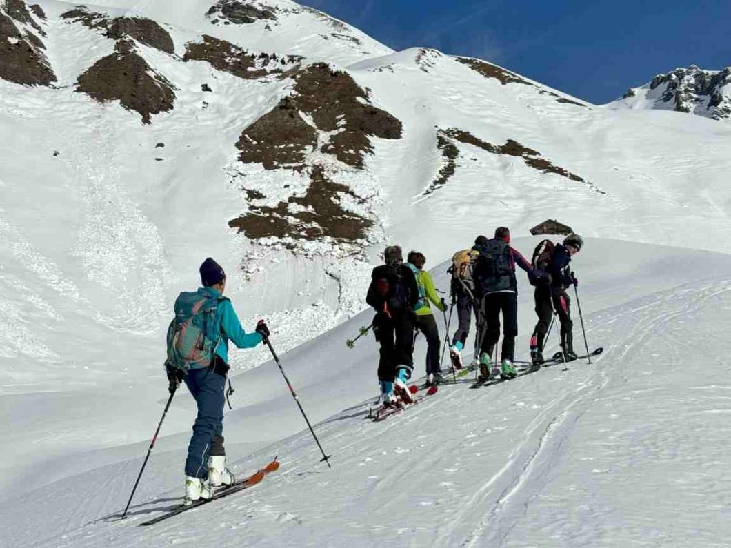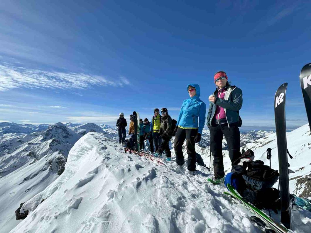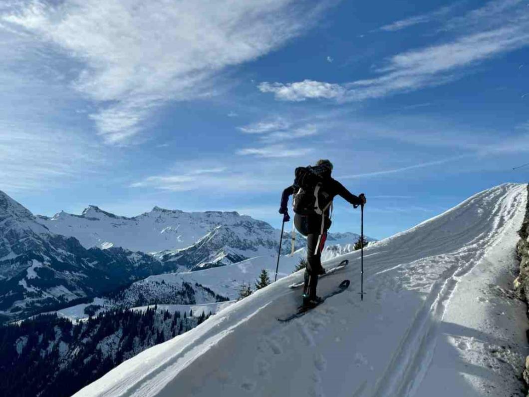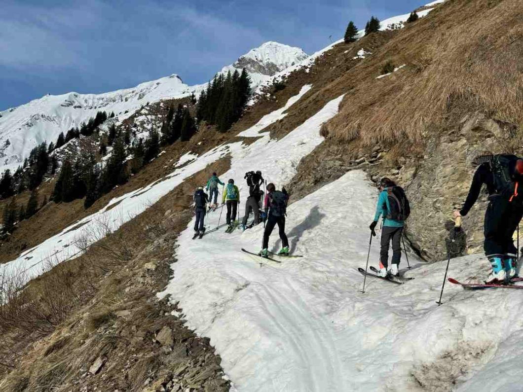 | Tourenbericht Der diesjährige Winter liess bis jetzt zu wünschen übrig. Doch Nadia kennt sich aus, statt Duregalm führte sie uns aufs Winterhore. Im Achset war fast Frühling. Zuoberst im Rinderwald wurde parkiert und abmarschiert. Doch dann ist die Strasse schneebedeckt und zügig erreichten wir die Otterealp. Nach einer kurzen Pause ging es weiter. Der Schnee war schon pappig, ‚Stogle’, das Wachsen der Felle half. Und wie es so in einer grossen Gruppe ist, die ambitionierten Laydis machten noch einen Abstecher aufs Ladholzhore. Respektvoll querten wir durch Fischmäuler und erreichten den Ladholzsattel. Wau, welch Kontrast - hier Winter mit Wechten, im Mittelland grün. Nordseitig hat es mächtig Triebschnee, Achtung Risse. Am Gipfelaufschwung stampften wir die letzten Meter hoch. Das Wetter war uns hold, genial die Rundsicht und der Einblick auf die Engstligenalp von hier oben. 12 Uhr 30 Zeit zur Abfahrt. Unsere Schwünge ziehen wir nordseitig durch teilweise brettigen, südseitig vorerst mässig schweren Schnee. Gegen die Otterealp gibt es genüsslichen Sulz. Bei einer Hütte war dann Zeit für das Pick-Nick. Dann ging es bobahnartig mit Abkürzungen die Strasse hinunter. Vorbei war bald die winterliche Herrlichkeit, 700m weiter errichten wir glücklich die Autos. Bei einem Umtrunk im Rohrbach liessen wir den herrlichen Tag Revue passieren - Merci Nadia - und wärmten vergangene Erlebnisse auf. |