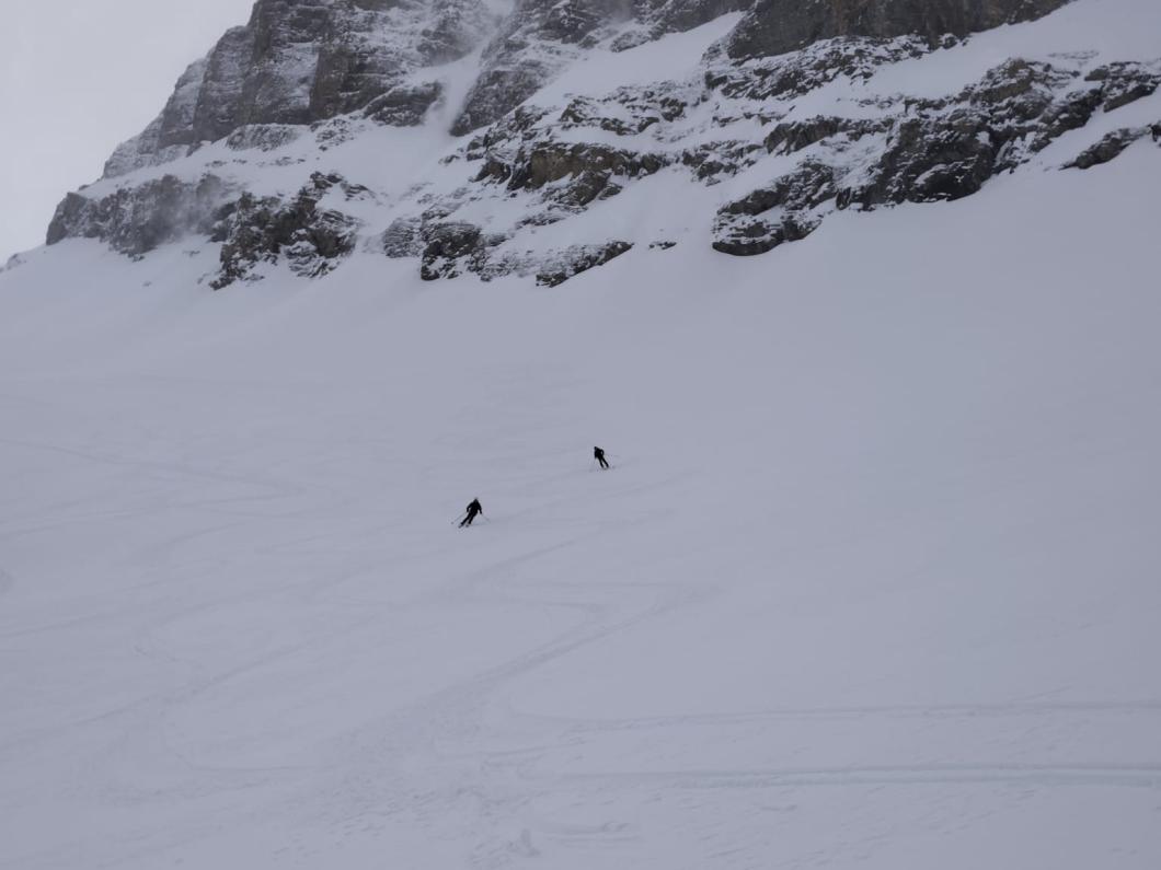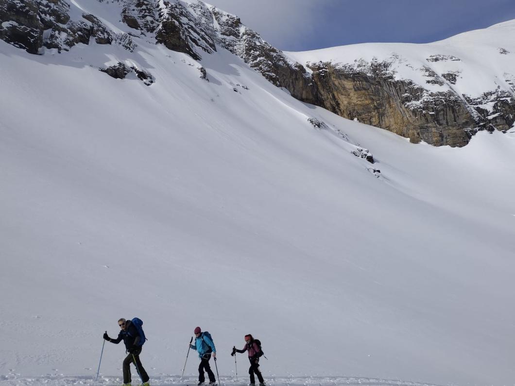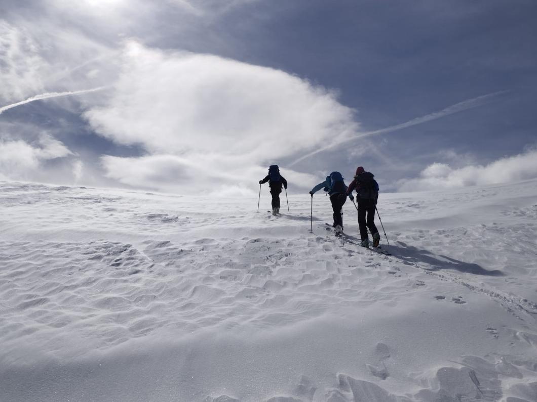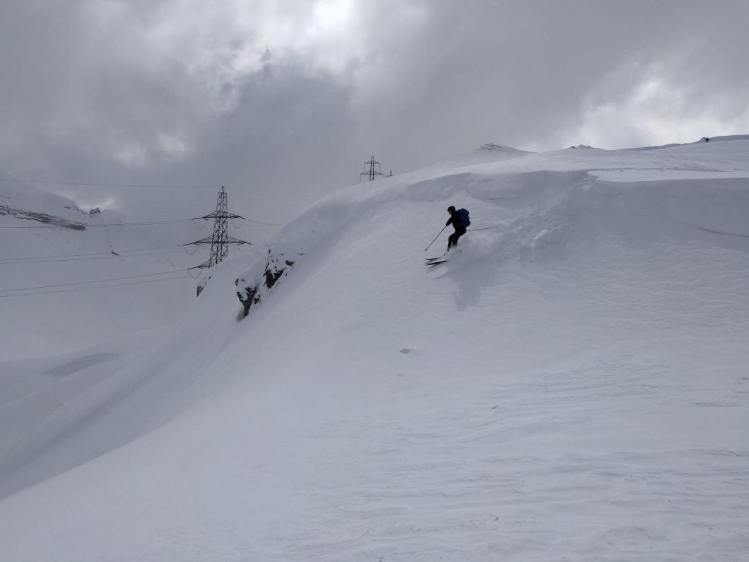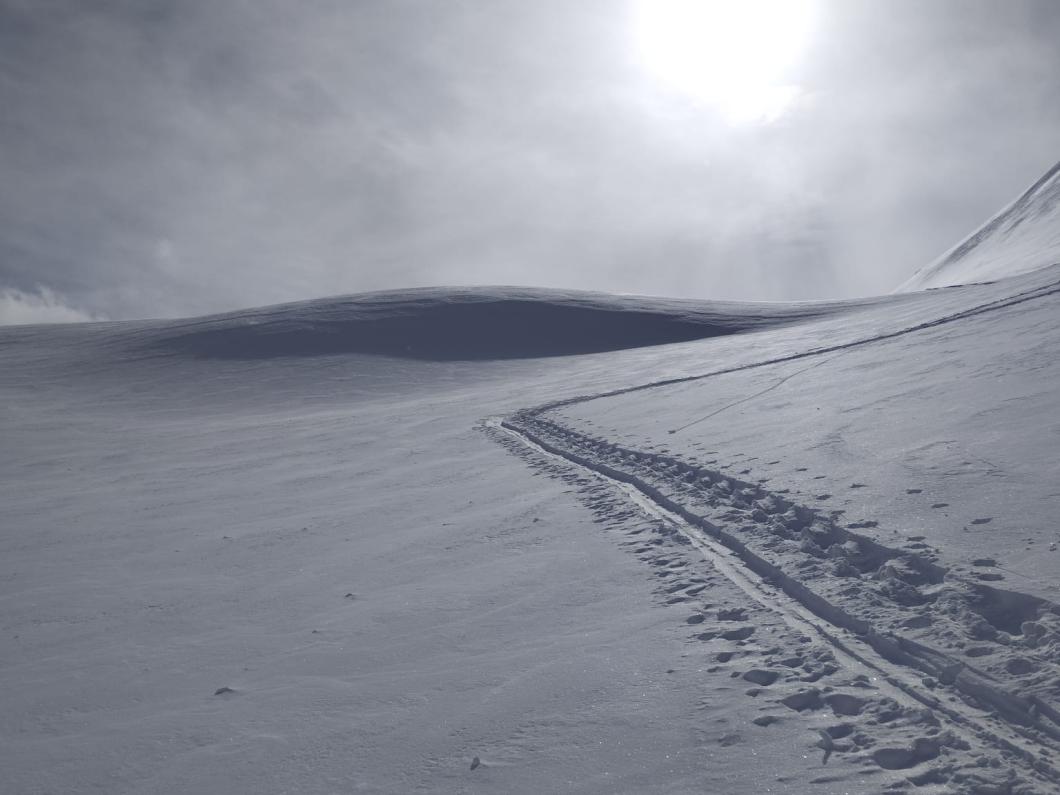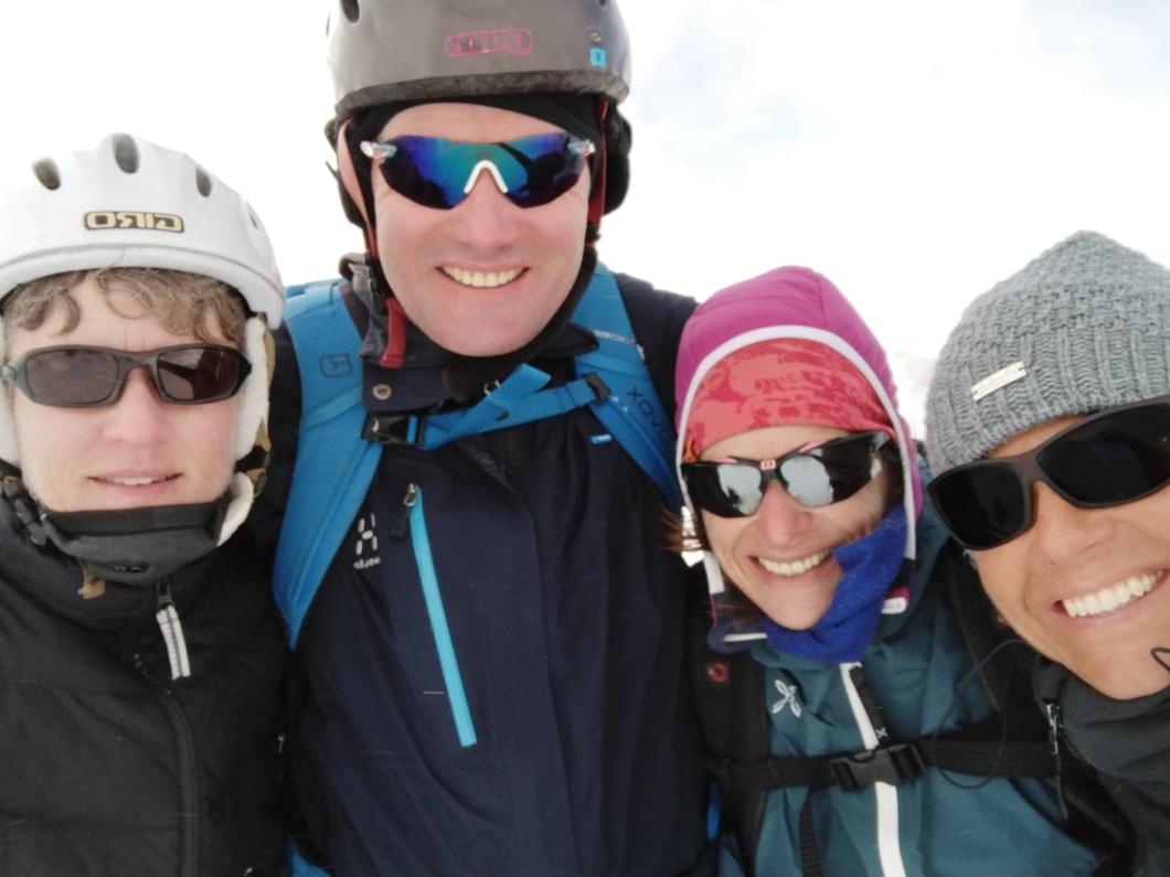 | Tourenbericht Wegen dem Föhn, den Schneefällen im Süden und der damit verbundenen Lawinengefahr wird der Rote Totz anstelle der Pointe de la Tsevalire zum Tourenziel erkoren. Unsere von 8 auf 4 Teilnehmer geschrumpfte Gruppe trifft sich in Frutigen auf dem Märitplatz. Bis nach Kandersteg ist es nicht weit, da finden alle einen Platz im selben Auto. Die "Zeitmaschine" Sunnbüehl- bahn beamt uns vom frühlingshaften Kandersteg zurück in den Winter. Man liebt sie oder liebt sie nicht: Skitouren, die mit einer Abfahrt beginnen. So oder so endet die Fahrt auf der flachen Spittelmatte. Bläst von Süden stürmischer Föhn Ist die Stimmung besonders schön Während dem Aufstieg geneissen wir die einmalige Wetterstimmung und bewundern die vom Wind gestaltete Schneelandschaft. Wie wird dieser Schnee wohl zu fahren sein? Bald wissen wir es. Noch ein paar Spitzkehren und wir erreichen den Gipfel. Die Windgeschwindigkeit und den Windchill-Faktor bestimmen wir anhand der Skitourenskala: Windgeschwindigkeit: Felle zusammenlegen noch möglich Windchill-Faktor: Sandwich essen auf dem Gipfel liegt auch noch drin Noch ein Selfie und danach testen wir den Föhn-Schnee. Zum Anschauen hübscher als zum Fahren. Ein paar schöne Kurven gibt es trotzdem noch. Auf jeden Fall sind wir alle zufrieden mit der Tour, so dass wir keinen weiteren Aufstieg mehr anhängen wollen und stattdessen einen Heidelbeerkuchen im Schwarenbach geniessen. Auch ohne lange ausgeklügelten Plan, Erreichen wir kurz vor Abfahrt die Bahn. Oben kann es weiter föhnen, wir sind jetzt wieder im Grünen Vielen Dank Yvonne für die schöne Zeitreise in den Schnee. Bericht: Monika Schranz |