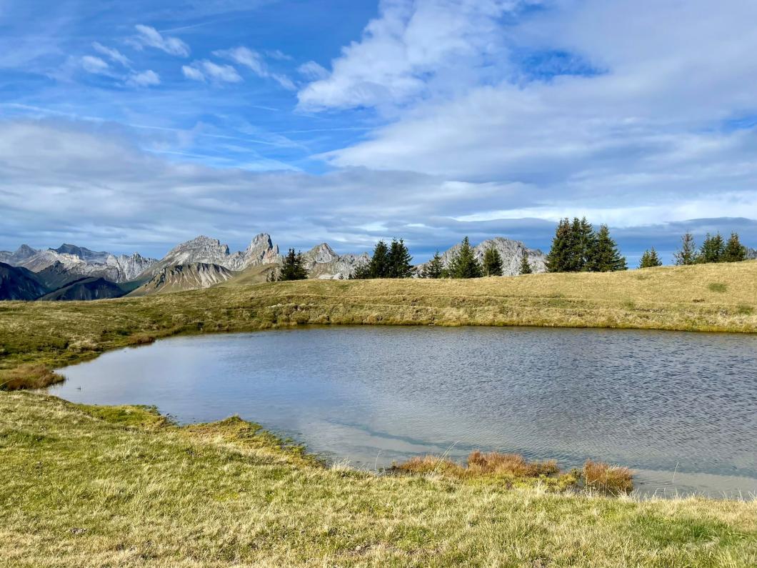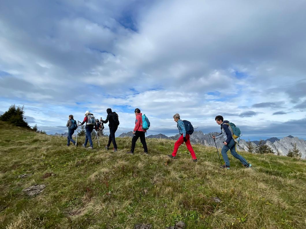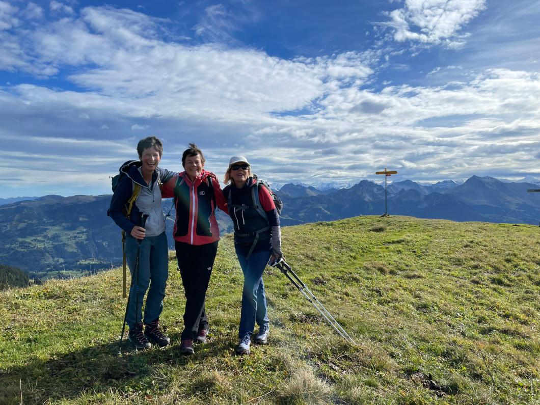 | Tourenbericht Eine Woche später, als ursprünglich geplant, fuhren wir nach Weissenbach im Simmental, mit den Ziel über den Hundsrügg zu wandern. 2 Frauen stiegen vorher aus und fuhren mit dem ÖV auf den Jaunpass, um dort die Wanderung zu starten, die andern sechs Frauen wollten noch ein paar zusätzliche Höhenmeter machen und starteten von Weissenbach aus, auf den Jaunpass. Nach all dem Regen war es zeitweise etwas "bützig". Oben angekommen genossen wir die hügelige, in warme Herbstfarben getauchte Wanderung über den Hundsrügg. Zu linker Hand bewunderten wir die Spillgerte und das Albristhorn. Auf der rechten Seite die Kette der Gastlosen. Wie so oft, war man sich nicht ganz einig, wie all die verschiedenen Gipfel nun wirklich heissen. Unter angeregten Gesprächen und guter Gemeinschaft erreichten wir um die Mittagszeit eine Berghütte. Da der Föhn immer stärker blies, waren wir froh, dass wir dort in einem Unterstand etwas Schutz fanden um unsere Sandwiches zu essen. MIt hochgezogenen Kapuzen und zum Teil mit Handschuhen ausgerüstet, fiel die Mittagspause eher kurz aus. Bald erreichten wir das Rellerli, wo uns Herr Bertarelli leider keinen Kaffee servieren wollte, dafür genossen wir die herrliche Aussicht auf das Saanenland. Nach einem kurzen Abstieg, bei dem wir noch 11 Gämsen bewundern konnten, kehrten wir in Schönried in ein hübsches Restaurant ein, um endlich unseren Kaffe zu uns zu nehmen. Zufrieden registrierten wir, dass wir fast 22 Km zurückgelegt hatten. Mit den ÖV ging es wieder zurück zum Auto. Danke Ruth, für die tiptope Organisation und für die wunderschöne Wanderung! Bericht: Vroni Pieren |