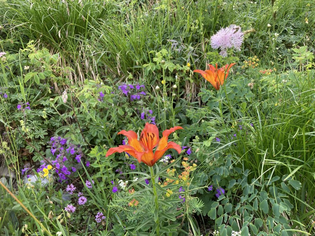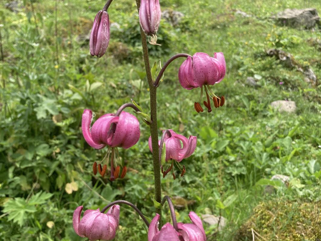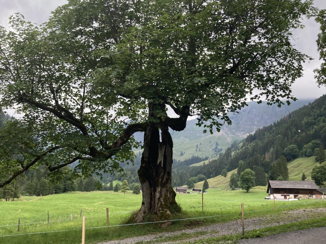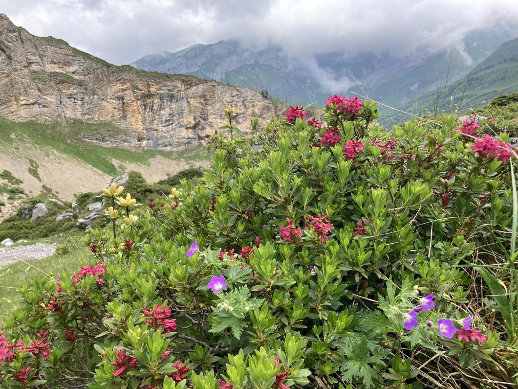 Im Gasthof Richisau, 1102m.ü.M. umgäh vo grossä, alte Ahore, hi wir herrlig gschlafe. Um di 6i dörfe wir endlig uf, imel i üsem Zimmer si scho lang aller wach. Nachemne riichhaltige Zmorge mache wir üs i zwo Gruppe ufe Wäg. Der Himel isch bewölkt, agnähmi Temperature zum luufä. Die erschti Gruppe, füf schnäli Froui, stüüre der Wäg richtig Wiggis Gipfel a. D Rosina nimmt di zwo schwechere grad hinder sig, u di zwo sterchere möge grad knapp nachi. So giits zügig desuehi, bis uf d Alp Dejen uf 1730. Das isch dä Ort, wo sig de speter die zweiti Gruppe mitem Fritz, wo hüt chli gmüetliger underwägs wott si, ufe Abstiig richtig Klöntaler See würd mache. Wir füf Froui wandere witer uf un ab, bis ob d Auerenalp. Vo da ewägg isch blau-wiss markiert. Iz giits 300hm dür nes stotzigs, grasigs Couloir desuehi, bis zu de Felsä, wo ma quer dür z Gröll, när nu es gäbigs Stück dür d Ankebäleni uf e Gipfel vom Wiggis uf 2282m chunnt. Während der Mittagsrascht gniess e wir d Ussicht uf die umligende Bärge u grediahi ids Tal uf d Ortschafte vo Glarus. Angens is mache wir üs umhi ufe Wäg, wir hi nu fascht 2000hm Abstig vor nus. Stotzig giits nitzig, es isch sunnig u warm. Wir stuunä ab der Bluemepracht; Füürlilie, Türkebund, gälbe Fingerhuet u viles meh. Am Ziel aglangt, bim Hotel Rhodannerberg, stosse wir uf die zweiti Gruppe, wo scho badet u duschet im Apero ischt. Wir gniesse der erfrischend schwumm im herrlige See, u la dä Tag uf der Terasse, wo wir nu ar Suna chöne Znacht äässe, la usklinge. När giits zytlig ids Bett.