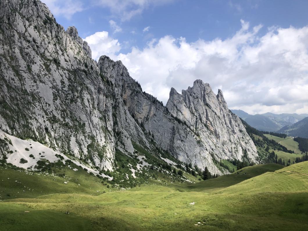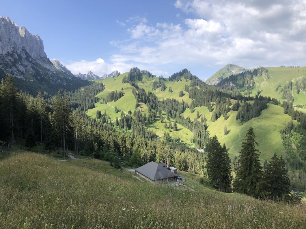 | Tourenbericht Für die Nacht vom 18./19. Juli war noch Regen angesagt. Dieser Regen hatte ein bisschen Verspätung! Als wir am Morgen in Adelboden losfuhren regnete es noch. Wie gehofft hörte es bald auf und in Jaun war der Himmel schon mehrheitlich blau. Wir fuhren mit dem Sessellift auf Mauzes Bergle, und starteten unsere Tour bei angenehmer Temperatur. Wir wanderten via Soldatenhaus auf gutem Bergweg zum Wolfs Ort, hier machten wir unsere Mittagspause. Die hohen Berner- und Walliseralpen waren im Dunst nicht sichtbar. Wir genossen die Aussicht trotzdem und hatten genügend Gipfel in der näheren Umgebung zu benennen. Weiter gings östlich von den zackigen Spitzen der Gastlosen zurück zur Bergstation. Es war schön und gemütlich mit euch unterwegs zu sein, danke! Rosina |