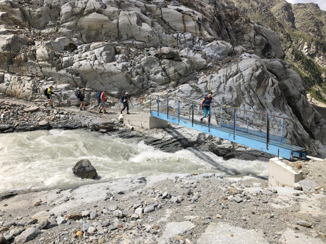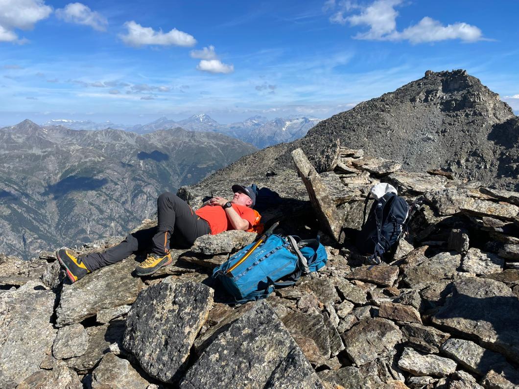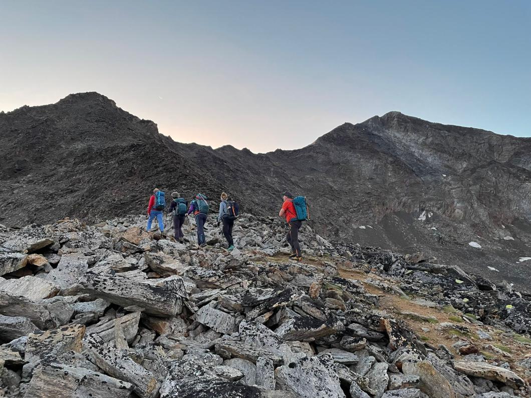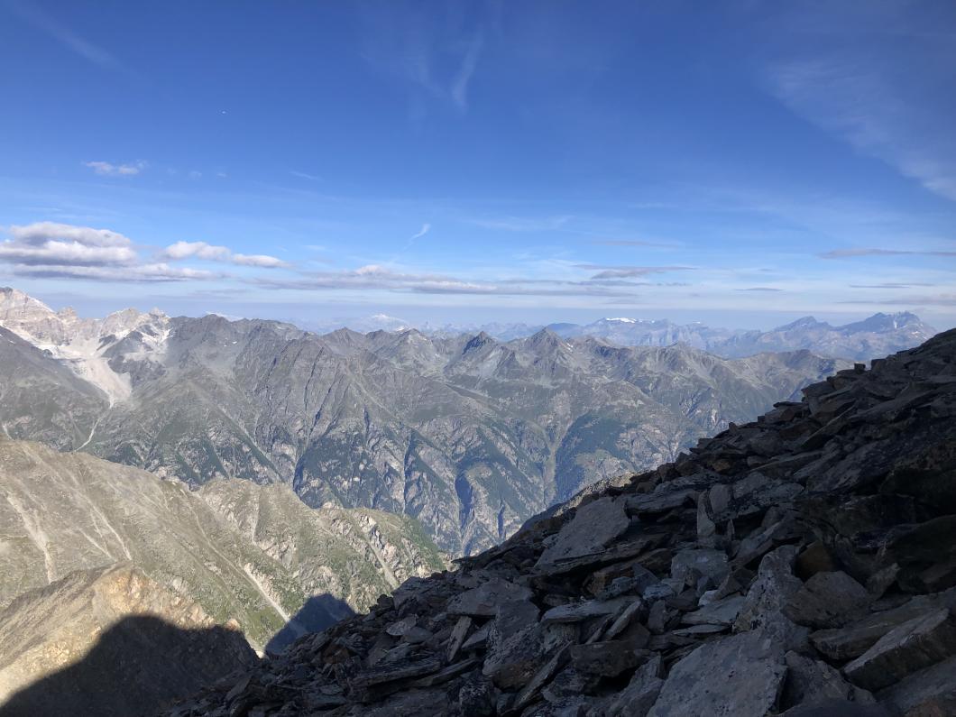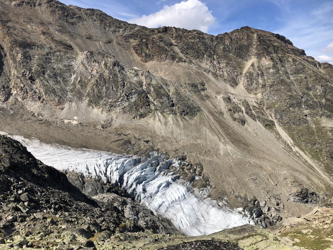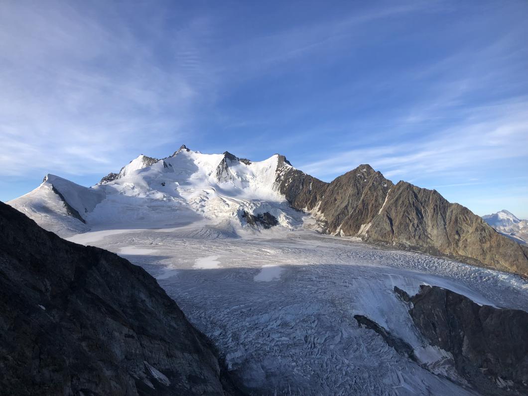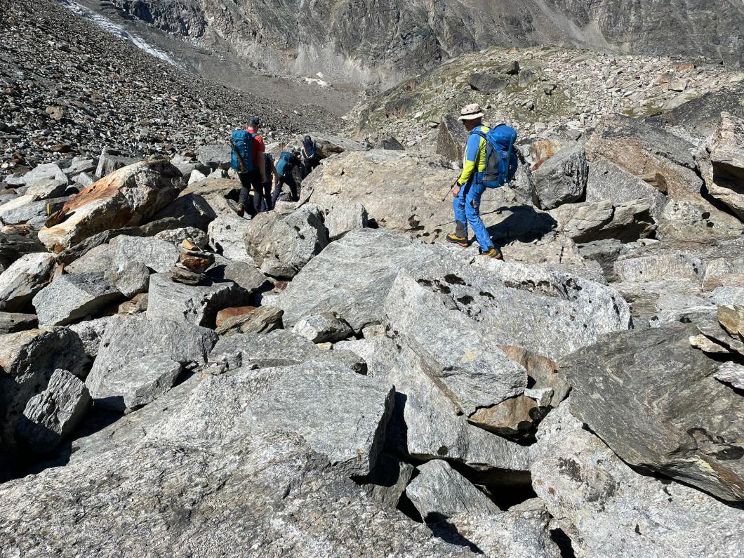 | Tourenbericht Gross Bigerhorn (statt Balfrin) Hoch gesteckt war unser Ziel den Balfrin via Gross Bigerhorn zu besteigen. Um 0450 marschierten wir in der Bordierhütte mit Stirnlampe ab. Während die Bergwelt erachte, stiegen wir über Schutt- und Blocksteinfelder und erreichten um 0745 das Gross Bigerhorn. Wir genossen die imposante Kulisse des Nadelgrates und die mehrere Quadratkilometer grosse Ebene des Riedgletscher. Mit Respekt schauten wir auf den Nordgrat des Balfrin hinüber - noch mindestens 2 Stunden Aufstieg. Bald waren wir uns einig, wir begnügen uns mit dem erreichten Ziel. Unser Blick schweifte während unserer über einstündigen Gipfelrast nicht nur in die Walliser (Weiss-, Bishorn und Barhörner), sondern in der Ferne auch in die Waadtländer, Berner, Urner und Tessiner Alpen. Dazwischen das Tierhöri und dahinter guckte das Gsür hervor sowie weit, weit unten Visp. Dann ging es 2000 Höhenmeter ins Tal hinunter. Ein kurzer Abstecher auf das Kleine Bigerhorn gab uns den Blick frei auf den ganzen Riedgletscher, die Bordierhütte und den Abstieg nach Gasenried, wo das Auto wartete. Um 1445 trafen wir in der Hütte ein und teilten uns eine Walliser Rösti mit Spiegelei. Um 13 Uhr (fuhr kein Bähnli) begannen wir den Abstieg. Nach einer Stunde erreichten wir das Gletschertor, eine Stunde später die romantische Alpja und wieder eine Stunde später entlang der Suonen und durch Lärchenwälder glücklich Gasenried. Vor 12 Stunden war Tagwache! Ein eindrücklicher Tag in der herrlichen Bergwelt, eine Schramme an einer Nase und brennende Füsse sowie die Erfahrung «Schuster bleib bei deinen Leisten» bleiben uns in Erinnerung. Ob schon die ersten Regentropfen fielen, träumten wir schon von unserer nächsten gemeinsamen Tour. Bänz |