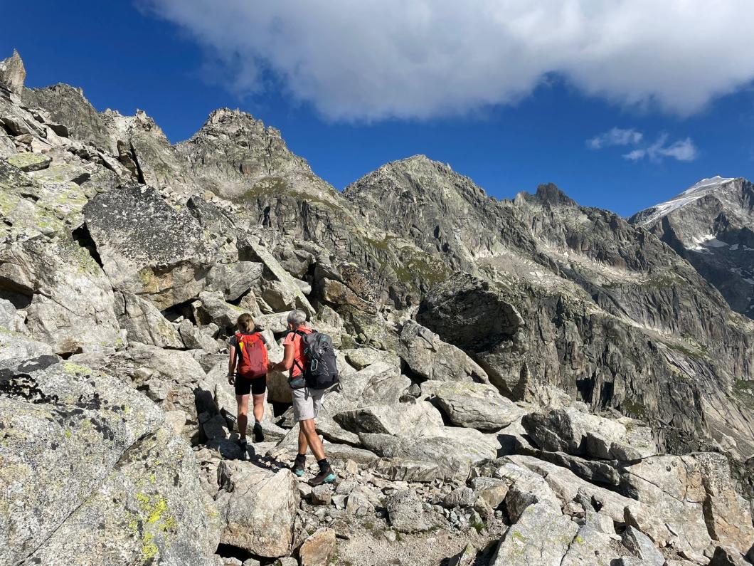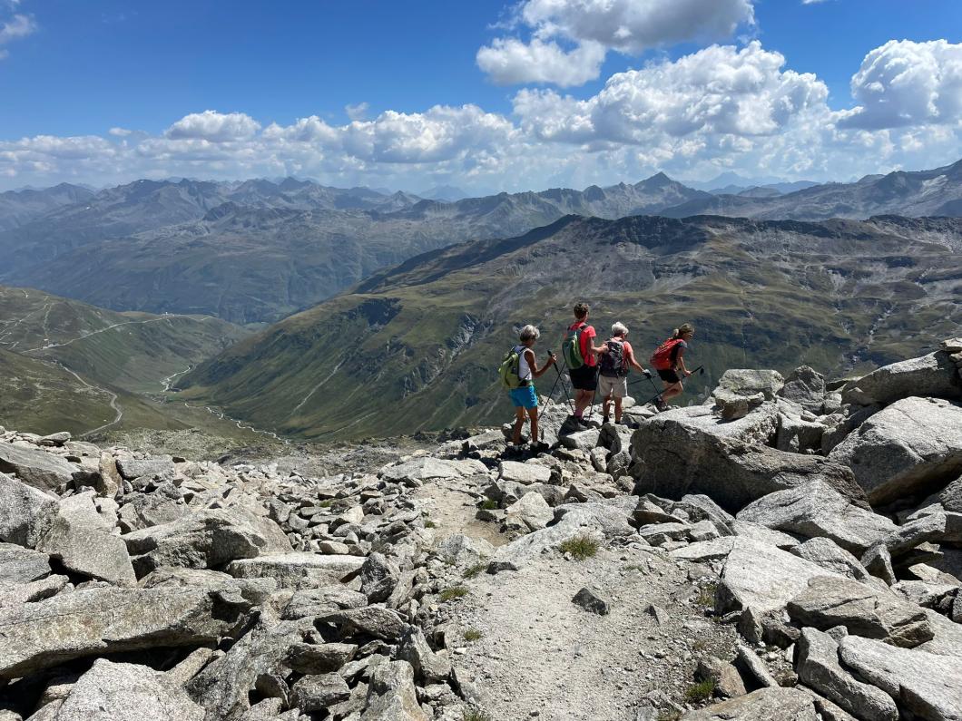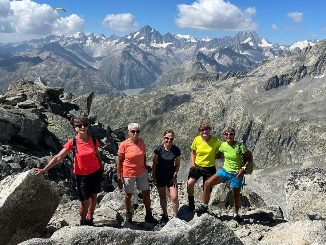 | Tourenbericht Was für ein Glück, dass wir an diesem Hitzetag auf über 2400 Meter über Meer starten durften. Gemütlich ging es zunächst Richtung Sidelenhütte bevor wir am Pt. 2524 Richtung Westen zum Ostsporn des Chi Furkhorns aufstiegen. Die vielen Blöcke verlangten sorgfältiges Gehen und eine ordentliche Portion Gleichgewicht. Abwechslungsreich und kurzweilig war der Aufstieg und schon bald trafen wir auf den Südgrat. Wenige Minuten später standen wir bereits auf dem Gipfel und durften eine fantastische Aussicht geniessen. Auf einem mehr oder weniger sichtbaren Pfad stiegen wir über den Südgrat ab und kehrten zum Ausgangspunkt zurück. Bei einem Drink auf dem Grimselpass liessen wir die Tour ausklingen, bevor es als krönenden Abschluss noch einen erfrischenden Abstecher am Badestrand gab. Herzlichen Dank allen Teilnehmer für die schöne Tour und die tolle Gesellschaft. Bericht: Ursula Schranz |