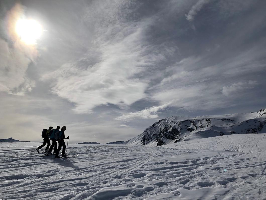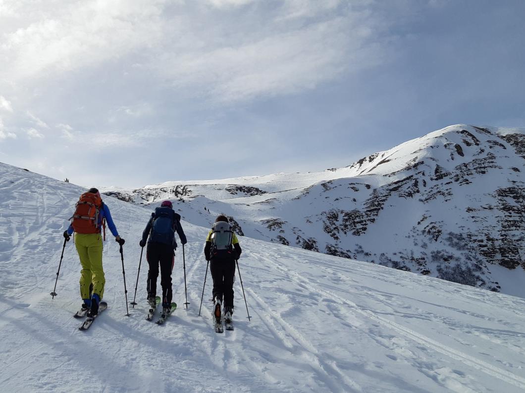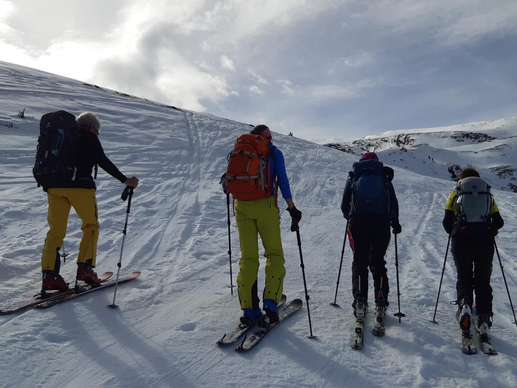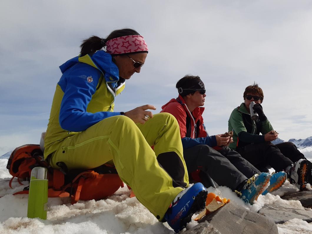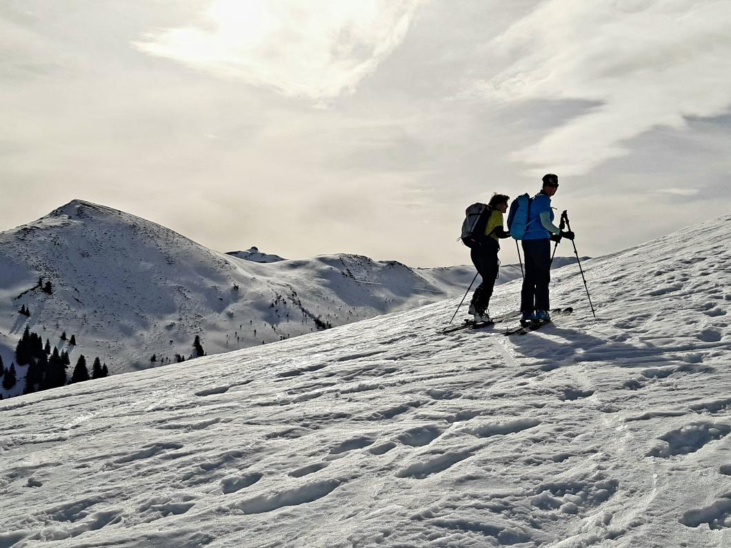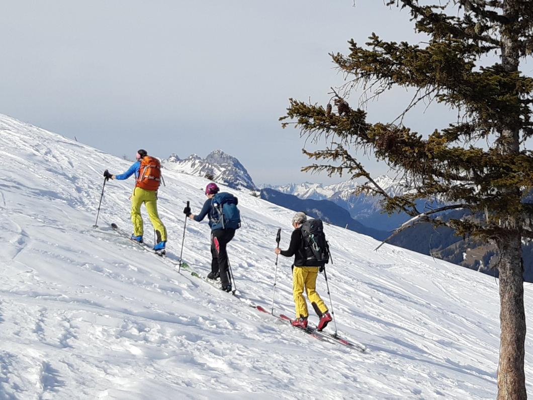 | Tourenbericht Ah, d Michèle hetti o nu e Mittwuchtour am 22.Februar… i mälde mi doch mal a… Schön, chunnsch ou, isch d Antwort… aber wohäre wott si ächt, nehmi mig Wunder, bi däre Schneelaag... Am Mentig chunnt d Antwort per SMS: Tourenziel Wistätthorn ab St. Stephan… OK… der Talbode isch uf 998m u ds Horä uf 2362… hets äch da nu Schnee, i so tüüfä Lagä?... Mir si gspannt, u fahre am Mittwuch morgä mit em grosse Auto vor Brigitt z füft nach St.Stephan. Bim Bahnhof träffe wir üs mit üser ufgstelltä Toureliiteri, u fahre nu es Stück ds Strässli uehi, bis zum Gräbli uf der Flueh. Die erstä 50 hm luufä wir nu der Wanderwäg uf, u scho chöne wir d Ski alegä… wär hetti das denkt, witer giits alls im Schnee... gmüetlich stigä wir bi bestem Wätter bis ufds Wistätthorä… obna gniesse wir d Ussicht u der Blick ids grüene Simmetal. D Abfahrt isch besser als erwartet, gwüss nu chli Sulz, u gar nüt uweg. Z fride cherä wir nu im ne Gasthuus i, u la dä schöö Tag revue passierä. Dankä allnä für die flotti Kameradschaft, u e bsundera Dank ar Michèle für die herrligi Tour, wo sie da usgsuecht het. Es isch schöö gsii! Bericht: Mädi Lauber |