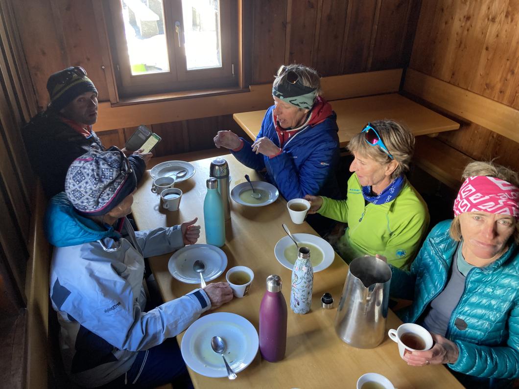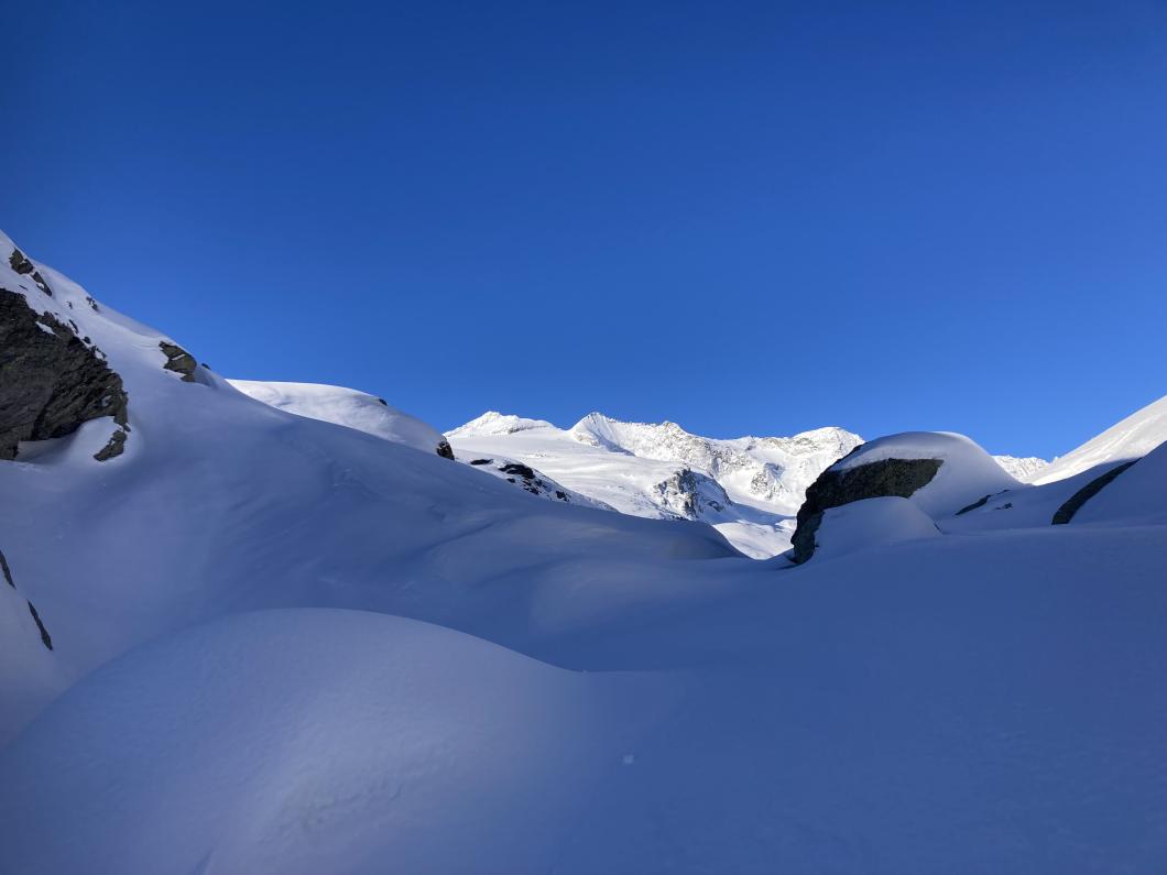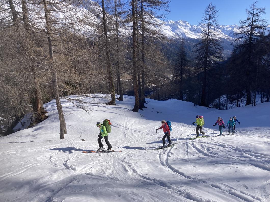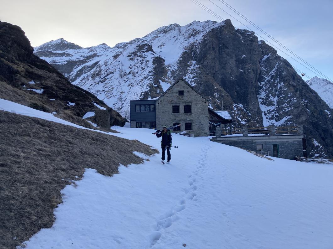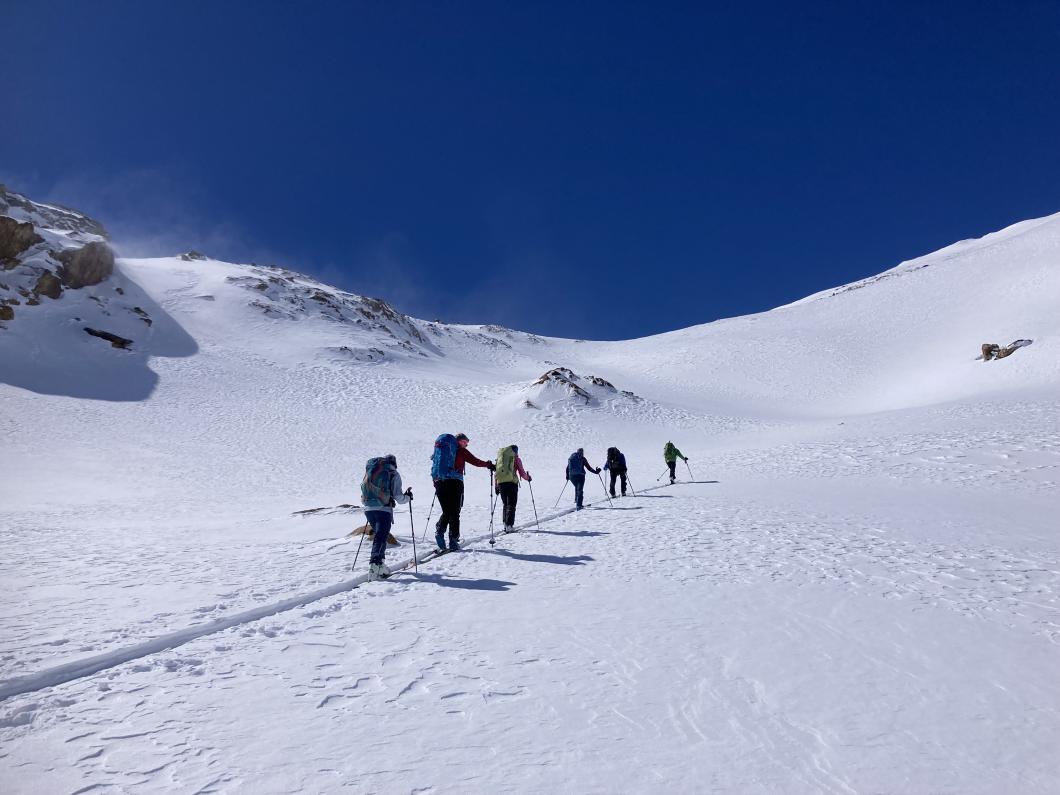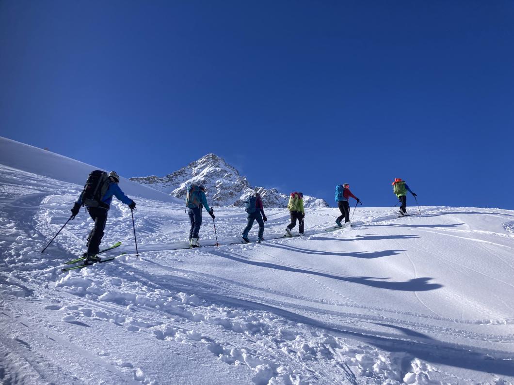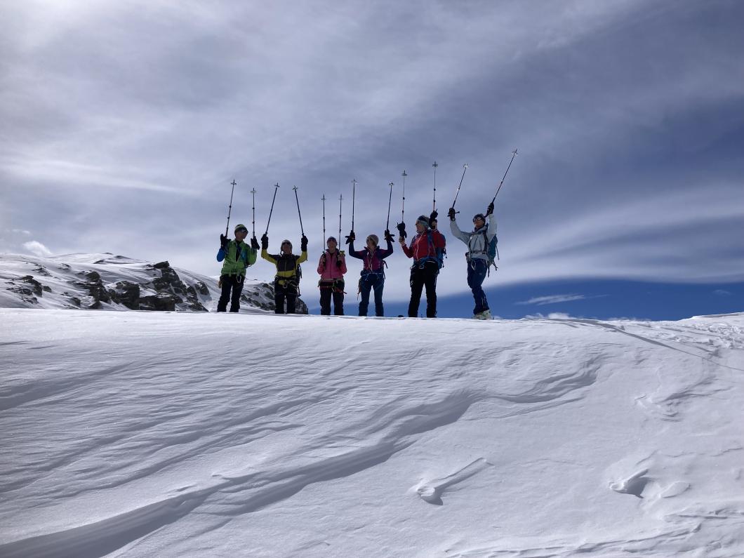 | Tourenbericht Tourenbericht Oberalpstock/ Basodino Da an den vorgesehenen Daten für die Touren Basodino und Oberalpstock das Wetter nicht mitspielte, haben Erwin und ich, in Absprache mit den angemeldeten Teilnehmern entschlossen, die Tour zusammen im Tessin zu unternehmen. Somit reisten wir Dienstag 4. April nach All Acqua ins Bedrettotal und stiegen von dort mit einigen Startschwierigkeiten hoch zur Bocchetta di Formazzora. Der letzte Hang war steil, durch die aktuelle Lawinensitation musste dieser Vorsichtig begangen werden. Alle gut oben angekommen, erfolgte eine kurze Abfahrt, um anschliessend wieder aufzusteigen Richtung Marchhorn. Da kurz vor dem Gipfel der Wind zu stark war verzichteten wir auf die Besteigung. Wir benutzten den Übergang unterhalb des Pizzo Fiorina und gelangten hinunter zu unserem Tagesziel der Basodino Hütte. Diese war nicht bewartet, somit wurde in der gut eingerichteten Küche Wasser gekocht, um Tee und Suppe zu machen. Die Zimmer wurden bezogen, etwas ausgeruht, und um 18.30 Uhr gabs zum Nachtessen Spa ghetti Bolognese. (Sauce von Erwin vorgekocht mit Hirschfleisch in Adelboden) Zur Geburtstagsfeier von Erwin, gabs noch ein Stück Nusstorte die von Rita gebacken wurde. Am nächsten Tag starteten wir bei schönem Wetter Richtung Basodino. Nach ca 200 Höhenmetern kam ich etwas von der Originalroute ab, was sich aber im Nachhinein als vorteilhaft erwies, da eine Steilstufe auf der Originalstrecke wegen der Lawinengefahr sehr gefährlich gewesen wäre zu passieren. Nach einem langen Aufstieg über den Basodino-Gletscher erreichten wir das Skidepot. Da in den Tagen zuvor niemand auf dem Gipfel war, kämpften wir uns im teils tiefen Schnee über den Grat zum Gipfel. Oben angelangt genossen wir die schöne Aussicht und stiegen zurück zum Skidepot. Mit den Skiern erfolgte eine schöne Abfahrt über den mit wenig Schnee bedecktem Gletscher bis hinunter auf ca 2200. Unten angelangt, hiess es wieder Felle montieren, um die ca 450 Höhenmeter hinauf zur Bocchetta di Val Maggio aufzusteigen. Oben angelangt, mussten wir einige Meter zu Fuss absteigen und genossen anschliessend auf der anderen Seite nochmals einen schönen Pulverhang hinunter zur Alpe Regina. Nochmals folgte ein Aufstieg hinauf zum Passo San Giacomo und einer weiteren Abfahrt hinunter nach All Acqua. Auf der Rückreise durch den Gotthard-Tunel machten wir Halt in der Raststätte Gotthard Nord, löschten unseren Durst und stillten unseren Hunger und fuhren zurück nach Adelboden. Alle waren sich einig, es waren zwei gelungene Tourentage im Nord-Tessin. Fritz |