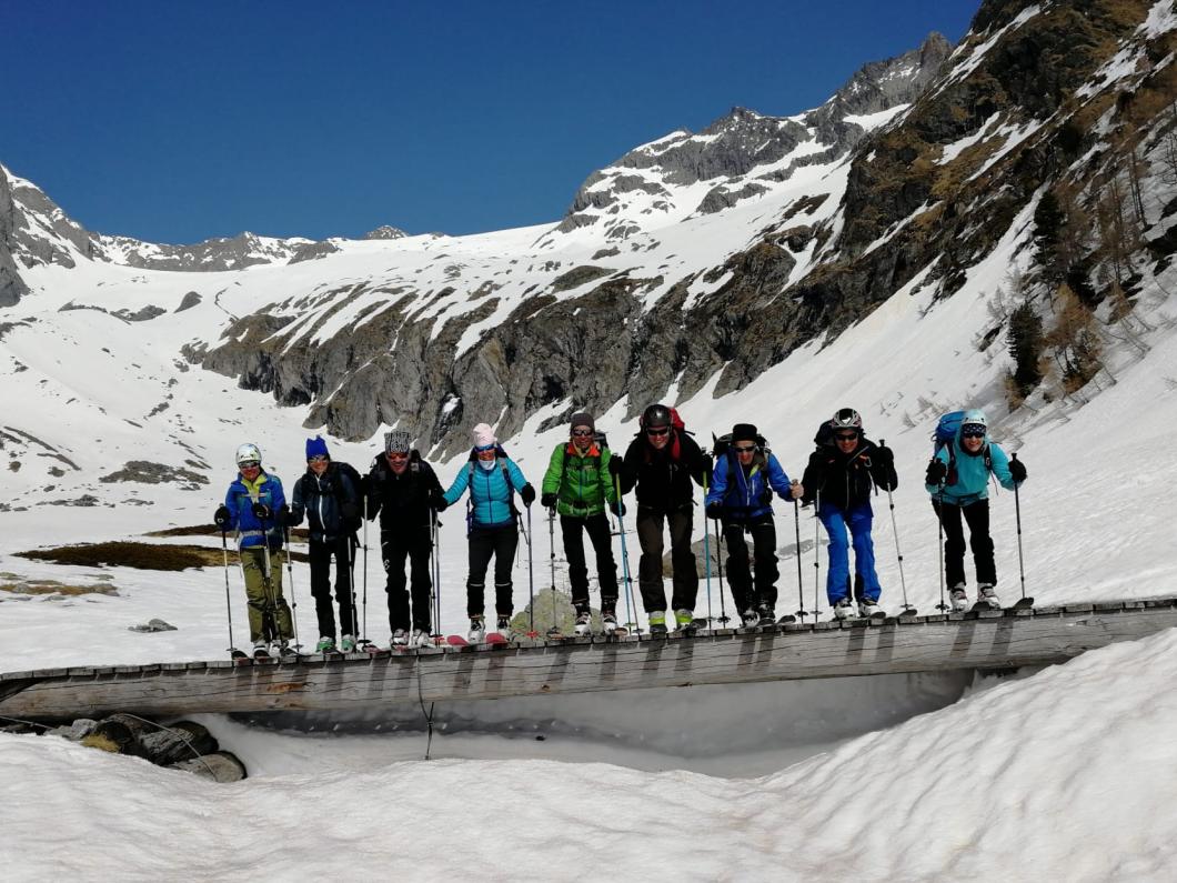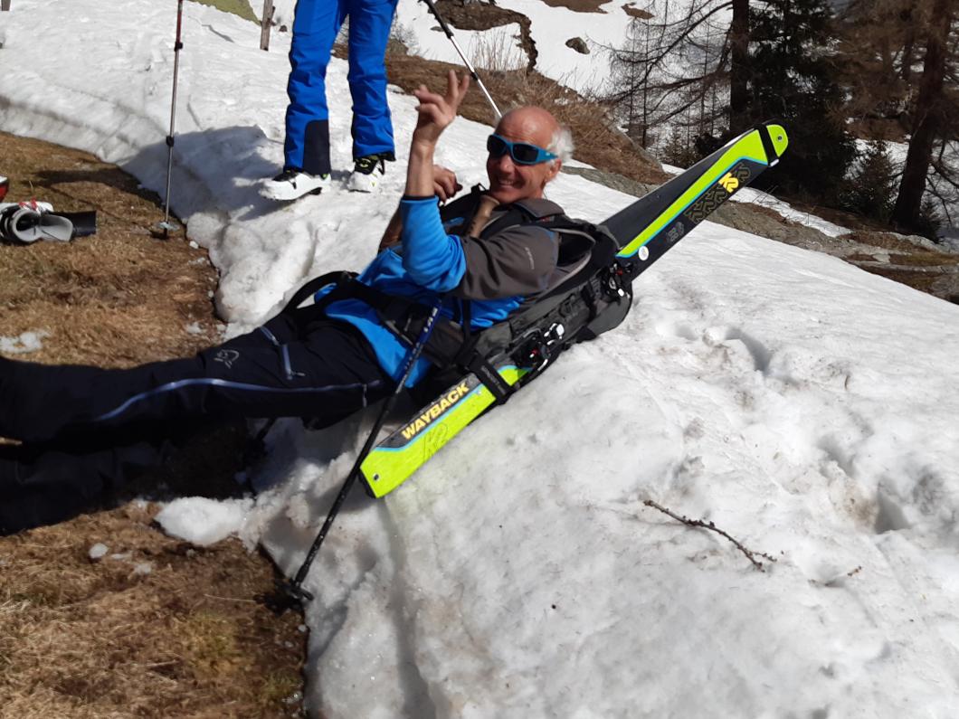 | Tourenbericht Früh ist unser Treffpunkt, nämlich um 5 Uhr. Da die Sommerzeit gerade jetzt beginnt, wird die Nacht noch kürzer. Wir fahren ins Wallis, nach Hohtenn. Das Strässchen schlängelt sich noch weiter hoch Richtung Alp Tatz. Auf gut 1400 Meter liegt auf einem kurzen Strassenabschnitt zu viel Schnee, um an eine Weiterfahrt zu denken. Also werden die Autos geparkt und die Skier auf den Rucksack gebunden. Die ersten 300 Höhenmeter legen wir wandernd zurück. Im Joli können wir die Tourenskis anziehen, sogleich montieren wir auch die Harscheisen Es folgt ein stotziger, recht mühsamer, gefrorener Hang im Wald. Diesen überwinden wir und gelangen bald in angenehmeres Gelände. Noch im Schatten und bei eher kühler Temperatur folgt die erste Pause. Dies hindert Babettli (Deckname!) nicht daran, es sich wie zu Hause auf der Couch gemütlich zu machen und seine Chips zu mampfen... Das Tal öffnet sich, weite Hänge werden sichtbar. Zügig steigen wir auf der harten, wellblechartigen und mit Saharastaub gepuderten Schneeunterlage auf. Vor uns sehen wir das Gipfelkreuz vom Wilerhorn. Ab Skidepot führt der Weg steil nach oben. Ohne Seil nicht zu bewältigen. Zudem reicht der Platz auf dem Gipfel für eine 10-köpfige Gruppe nicht aus. Also wird dies heute nicht unser Ziel, wir weichen auf das benachbarte Gletscherhorn aus. Die Aussicht nicht minder fantastisch, das Bietschhorn zum Greifen nah, geniessen wir eine längere Rast auf dem Gipfel. Dank Peter’s feinen Kirschstengeli können wir sogar anstossen. Die Abfahrt erweist sich besser als erwartet. Dank den warmen Sonnenstrahlen weicht der Schnee auf. Wir haben nichts dagegen. Ab Jolialp werden die Skier wieder aufgebunden und zu Fuss geht es zurück zu den Autos. Im Wallis finden wir keine offene Gaststätte. Wir entscheiden bis Kandersteg zu fahren und uns im Tea-Room Marmotte verwöhnen zu lassen. Merci Peter für diese tolle Tour und deine kompetente Führung. Bericht: Evelyne Allenbach |