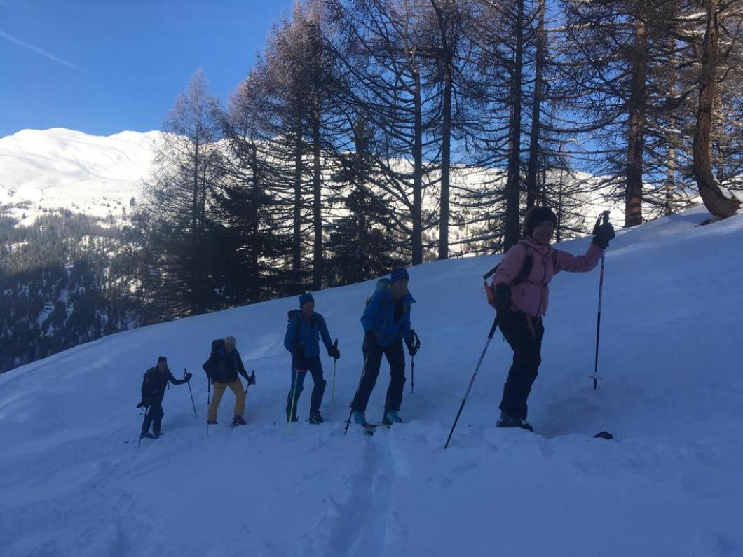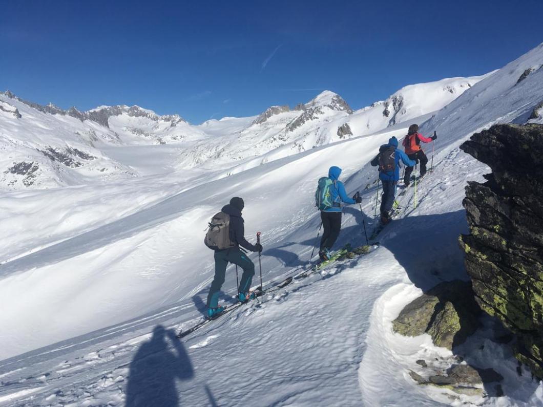 | Tourenbericht An einem strahlend schönen Wintertag stiegen wir von Oberwald via Hungerberg zum Galestafel. Frisch gestärkt ging es über den Tälligrat auf den Tällistock, dessen Wintergipfel wir in knapp 4 Stunden erreichten. Herrliche Aussichten in die Urner, Berner, Walliser und Tessiner Alpen weckten Erinnerungen und motivierten zu neuen Tourenzielen. Auf der anschliessenden Abfahrt entlang der Aufstiegsroute fanden wir Pulver, ab und zu garniert mit Hartschnee. Zum Ausklang genossen wir auf der Terrasse des Restaurant Hungerberg feine Spezialitäten und das prächtige Panorama in der glänzenden Abendsonne. Diese begleitete uns noch auf den letzten Pulverschwüngen hinunter nach Oberwald. Herzlichen Dank allen Teilnehmern fürs Mitmachen. |