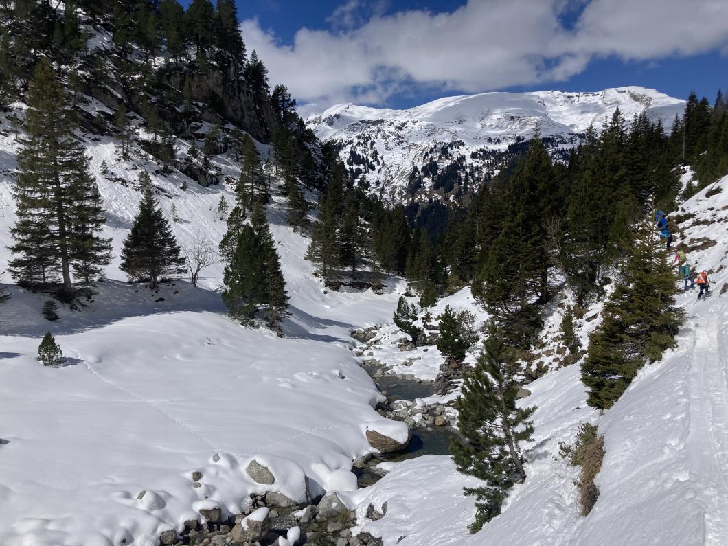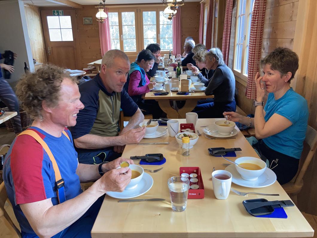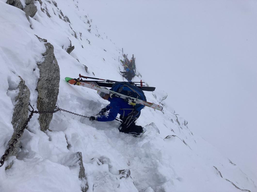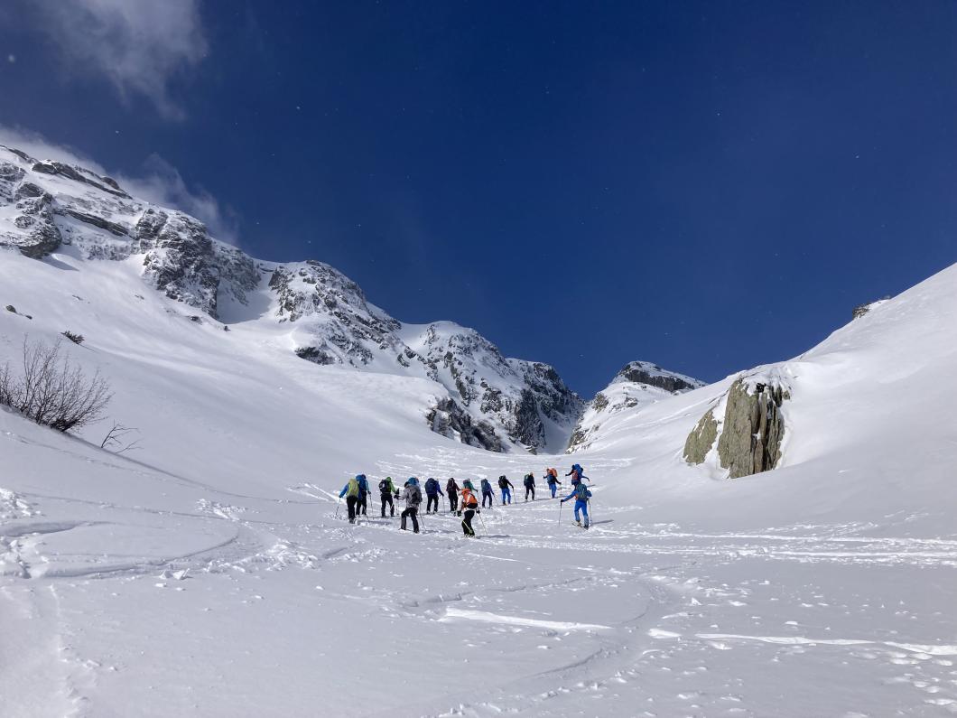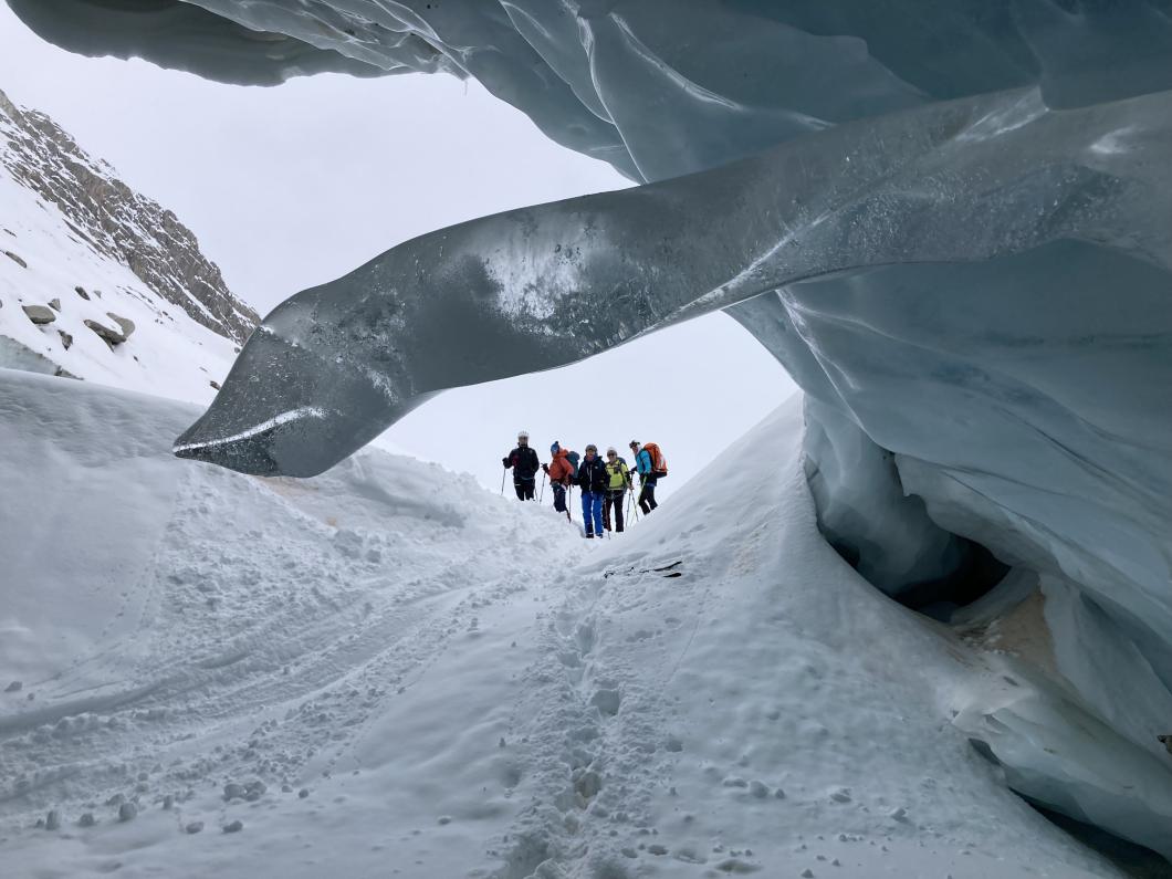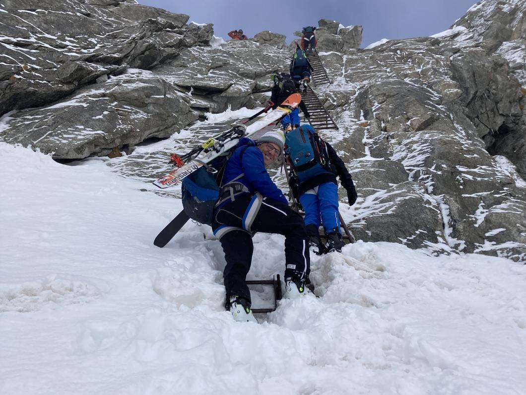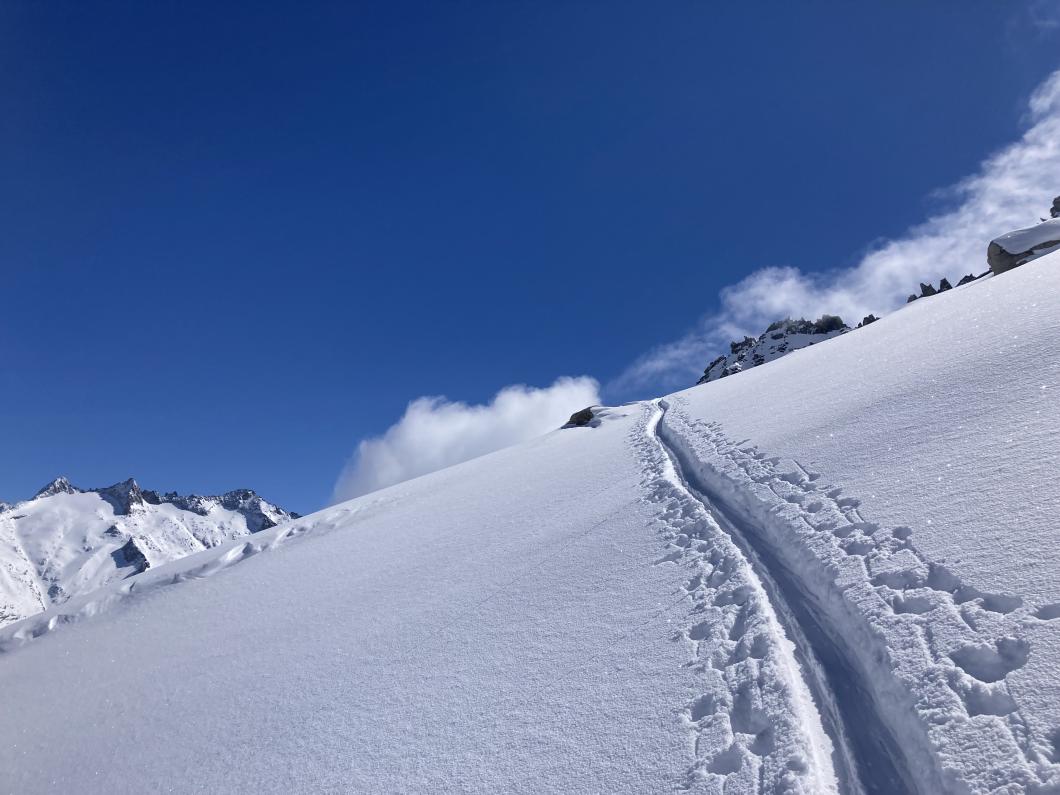 | Tourenbericht Nach durchzogenem Wetterbericht reisten wir am Montag Richtung Meiringen um dort mit dem Taxi in die Handegg zu fahren. Die Gondelbahn zog uns, von dort, in drei Fahrten hinauf zum Räterichsboden-Stasusee. Von dort erfolgte der Aufstieg in die Bächlital-Hütte. Da wunderbares Wetter herrschte entschlossen wir uns, bevor wir definitiv zur Hütte aufstiegen, die Pulverhänge unter dem Brünberg zu geniessen und dies gleich zweimal. Am nächsten Tag stiegen wir bei etwas schlechterem Wetter über die Obere Bächlilücke in die Gauli-Hütte. Leider konnten wir auf Grund des Nebels das vorgesehene Hubelhorn nicht besteigen. In der Hütte spendierte uns Sami und Manfred ein Apero, welches von der Hüttencrew zubereitet wurde. Da der Wetterbericht für Donnerstag einen Wetterwechsel mit viel Wind und Schneefall ankündigte, entschlossen wir uns das Gauli am Mittwoch über das Ränftenhorn, Richtung Rosenlaui, schon wieder zu verlassen. Bei wunderschönem Wetter stiegen wir am nächsten Tag über den Gauligletscher, vorbei am Flugzeugwrack der Dakota, hinauf zum Ränftenhorn. Die grandiose Abfahrt hinunter ins Rosenlaui war lang, anstrengend aber sehr imposant. Im Tal angekommen stiegen wir auf zur Broch-Hütte, wo wir unseren Durst und Hunger stillten. Schon bald begann es zu winden und kurz darauf kam der angekündigte Regen. Nach dem Nachtessen (Gschwellti u Raclette) studierten wir den Wetterbericht für den nächsten Tag. Wir entschlossen uns, in der angekündigten Regenpause, mit einer Gruppe Richtung Schwarzhorn aufzubrechen. Tatsächlich ermöglichte uns dieses Fenster am nächsten Tag dieses Vorhaben. Ein Teil der Gruppe blieb zurück in der Hütte, übte sich in der Seiltechnik bei Selbstaufstieg und Spaltenrettung. Nach der Rückkehr jener Leute, die noch auf den Skiern waren, gabs nochmals etwas zu Essen in der Hütte. Nach einer kurzen Theorie, (Tourenvorbereitung mit elektronischen Hilfsmitteln) endete die um einen Tag verkürzte Tourenwoche. Herzlichen Dank an Sami und Manfred, welche uns kompetent durch diese grandiose Landschaft führten! |