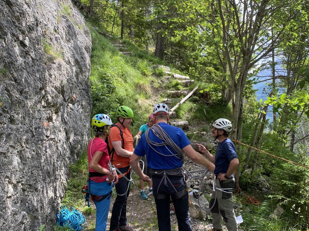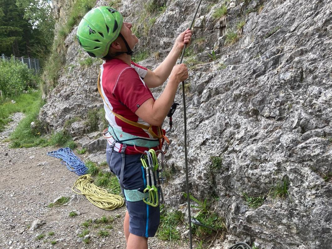 Bei schönem, warmem Sommerwetter trafen wir uns an der Stiegelfluh. In zwei Teams durften wir die Grundtechniken des Sicherns am Fels erlernen bzw. auffrischen.