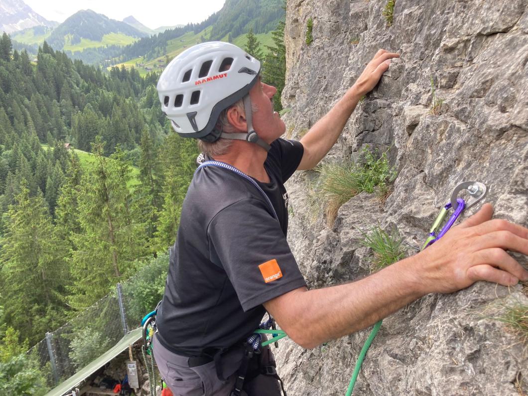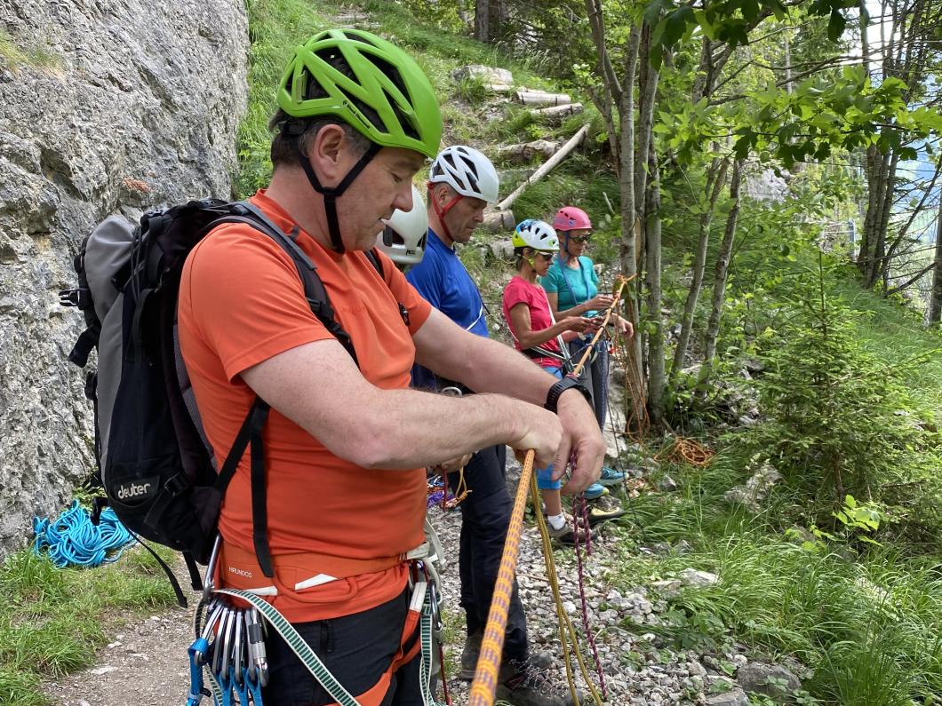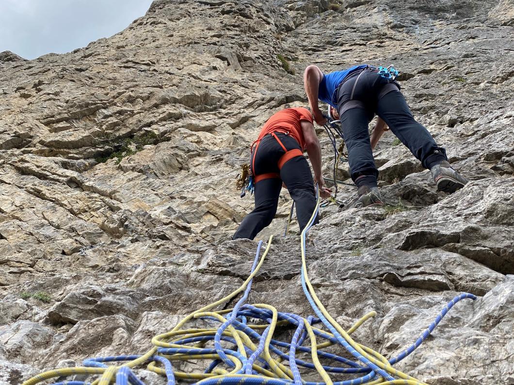 Chrigi wiederholte mit uns die Sicherungstechniken und die Seilhandhabung beim Mehrseillängen-Klettern.