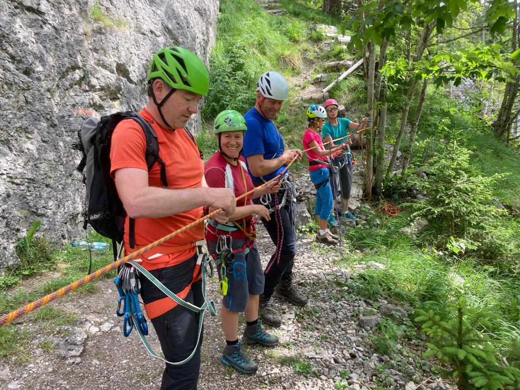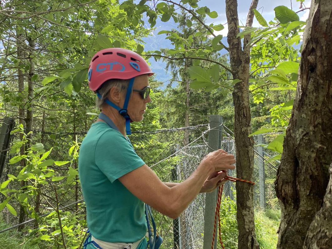 Fritz zeigte uns die wichtigsten Knoten und wir übten die Seilverkürzung und das Gehen am kurzen Seil.